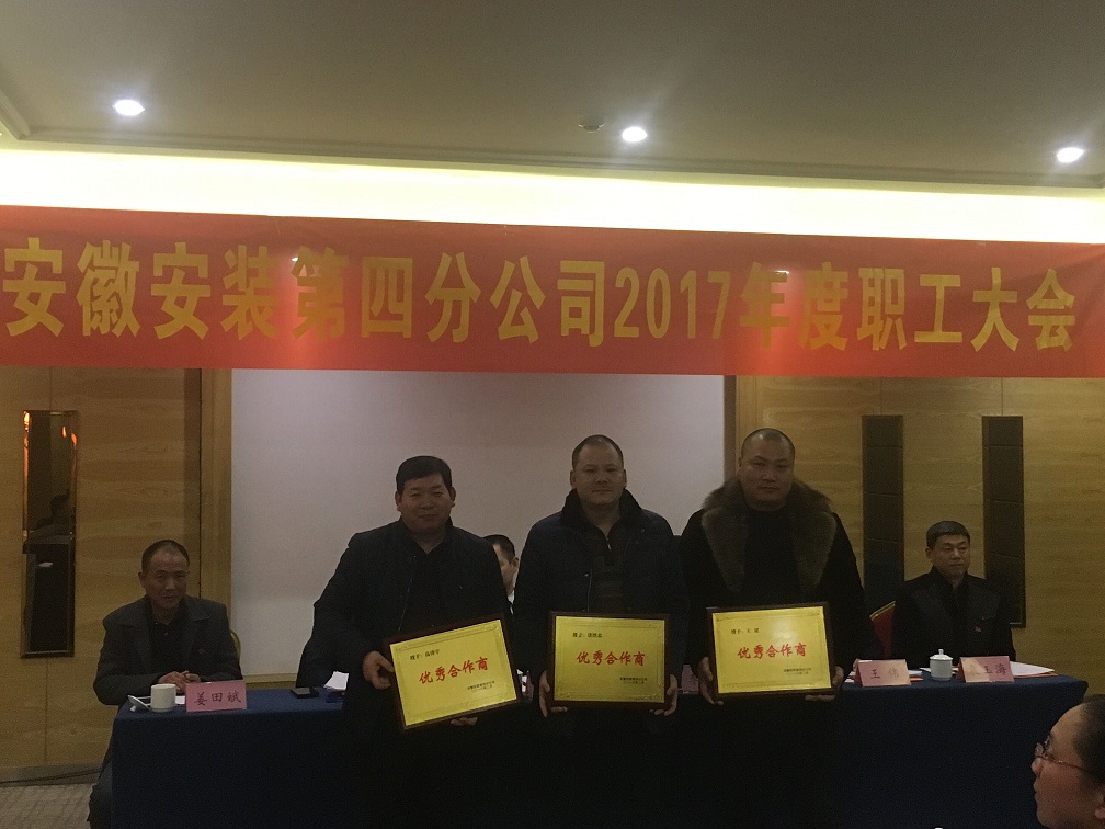 2018年2月1日上午,安徽安裝第四分公司召開2017年度職工大會(huì)。公司黨委書記、副總經(jīng)理胡六中,紀(jì)委書記、工會(huì)主席李寬旭應(yīng)邀出席了大會(huì)。