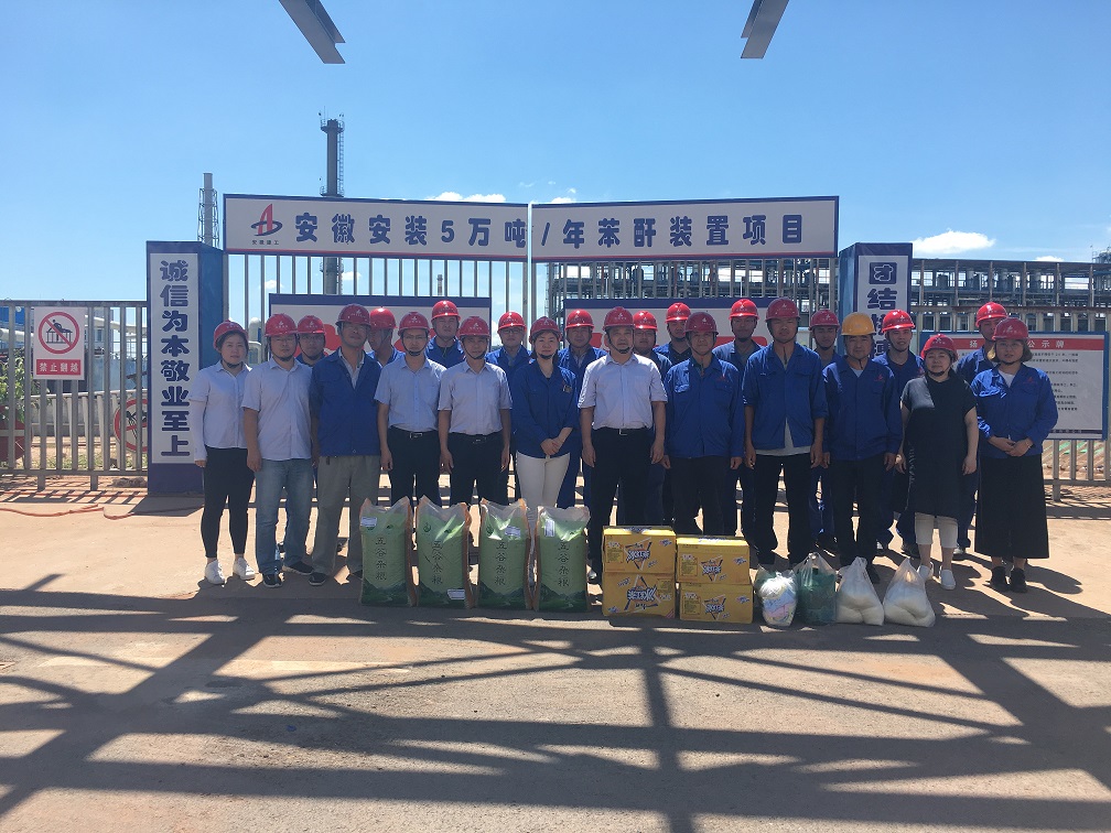 炎炎夏日,驕陽(yáng)似火。為做好高溫季節(jié)防暑降溫工作,確保一線職工的健康安全,7月17日下午,公司董事長(zhǎng)、總經(jīng)理、黨委副書記王軍邦,在紀(jì)委書記、工會(huì)主席李寬旭和副總經(jīng)理李原等公司相關(guān)部門負(fù)責(zé)人的陪同下,深入安慶分公司力天環(huán)保項(xiàng)目部,為堅(jiān)守在一線的員工送去綠豆、白糖、礦泉水、藿香正氣水等防暑降溫慰問(wèn)品。