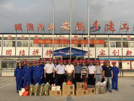 牛曙東一行一到工地就深入施工現(xiàn)場(chǎng)察看項(xiàng)目安全防護(hù)設(shè)施、文明施工、工程進(jìn)展情況,還仔細(xì)詢問(wèn)員工的工作、生活和項(xiàng)目黨建工作等。為奮戰(zhàn)在高溫中的一線職工送去了礦泉水、綠豆、毛巾等防暑藥品等慰問(wèn)品,關(guān)切職工工作和身體狀況,深入到職工宿舍、食堂實(shí)地查看職工居住和生活條件。詳細(xì)了解高溫期間工作安排情況,并向堅(jiān)守在高溫一線的職工表示親切慰問(wèn)和感謝。牛曙東指出,連續(xù)高溫天氣,一線職工始終堅(jiān)守在崗位,落實(shí)高溫天氣作業(yè)安全防范措施,做好當(dāng)前防暑降溫工作,防止職工中暑,確保人身安全。