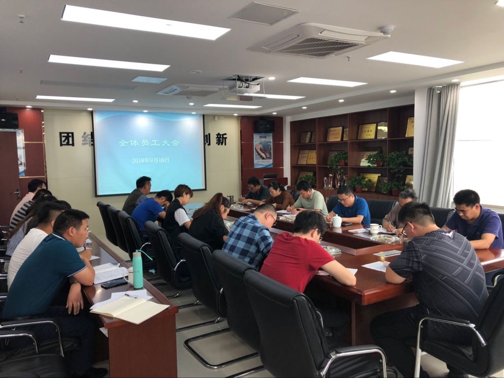9月18日上午,蚌埠分公司召開全體員工大會(huì)宣貫公司黨委書記、董事長胡六中在公司中層以上管理人員會(huì)議上的講話精神,會(huì)議由分公司黨支部書記洪軍主持。