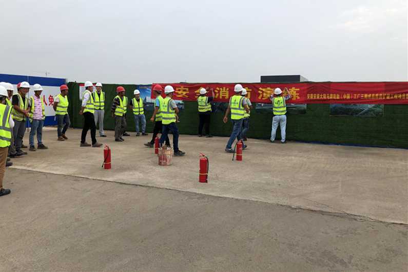 演練正式開始前,項(xiàng)目部全體人員在“安全消防演練”的紅色橫幅上鄭重的簽下了自己的名字。演練按預(yù)定方案進(jìn)行,項(xiàng)目部安全員闡述了本次演練的目的和意義,介紹基礎(chǔ)的火災(zāi)消防知識,點(diǎn)明掌握火災(zāi)逃生的基本方法。項(xiàng)目管理公司安全工程師針對項(xiàng)目部可能存在的火災(zāi)隱患做了重點(diǎn)闡述,并指出項(xiàng)目部可能發(fā)生火災(zāi)的地點(diǎn)主要為生活區(qū),重點(diǎn)強(qiáng)調(diào)各班組長在生活區(qū)要做好宣傳帶頭作用,將火災(zāi)隱患扼殺在萌芽之中。項(xiàng)目技術(shù)負(fù)責(zé)人李冬現(xiàn)場講解并示范了常見的手提式干粉滅火器的使用方法,而后參演人員親自體驗(yàn)了如何正確的使用滅火器。消防演練緊張有序,安全保證工作到位,演練達(dá)到預(yù)期效果。