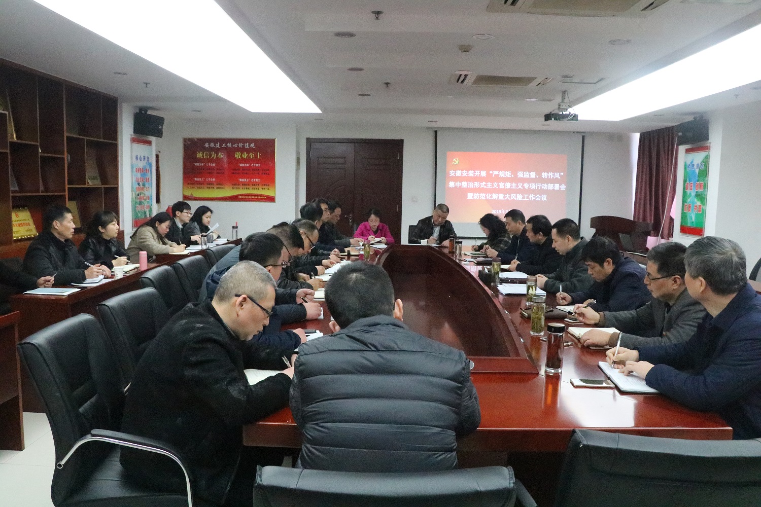 3月11日上午,安徽安裝公司組織召開(kāi)“嚴(yán)規(guī)矩、強(qiáng)監(jiān)督、轉(zhuǎn)作風(fēng)”集中整治形式主義官僚主義專(zhuān)項(xiàng)行動(dòng)部署會(huì)暨防范化解重大風(fēng)險(xiǎn)工作會(huì)議。公司黨委書(shū)記、董事長(zhǎng)胡六中主持會(huì)議,公司領(lǐng)導(dǎo)、機(jī)關(guān)部門(mén)負(fù)責(zé)人、分公司黨政主要領(lǐng)導(dǎo)等共30余人參加會(huì)議。