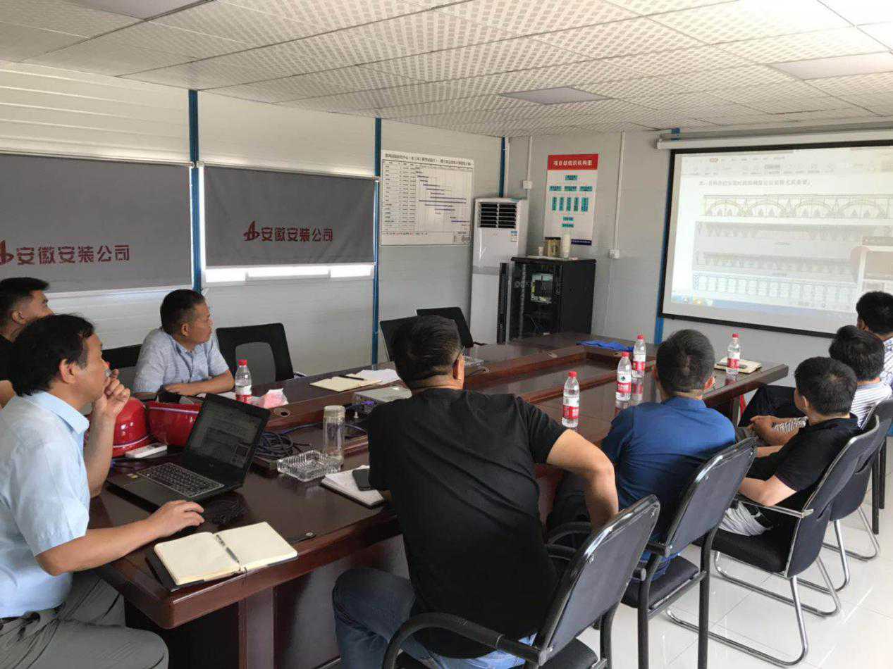高總一行首先深入施工現(xiàn)場(chǎng),頂著烈日對(duì)鋼結(jié)構(gòu)管桁架組裝現(xiàn)場(chǎng)進(jìn)行了詳細(xì)檢查。隨即召開了項(xiàng)目推進(jìn)匯報(bào)會(huì)暨鋼結(jié)構(gòu)施工方案研討會(huì)。會(huì)上,高總詳細(xì)詢問項(xiàng)目在進(jìn)度保障、成本管控、夏季防暑降溫、項(xiàng)目后勤保障等方面的措施,并與項(xiàng)目部技術(shù)人員進(jìn)行交流,同時(shí)對(duì)四聯(lián)拱、主桁架等安裝關(guān)鍵節(jié)點(diǎn)進(jìn)行詳細(xì)的技術(shù)指導(dǎo)和交底。他要求項(xiàng)目部一定要嚴(yán)格監(jiān)控鋼構(gòu)變形,強(qiáng)調(diào)對(duì)稱點(diǎn)吊裝,時(shí)刻監(jiān)控結(jié)構(gòu)變形量,形成穩(wěn)定體系后再允許卸載。會(huì)上還就項(xiàng)目存在的困難等方面給與了詳細(xì)指導(dǎo)和解答。
