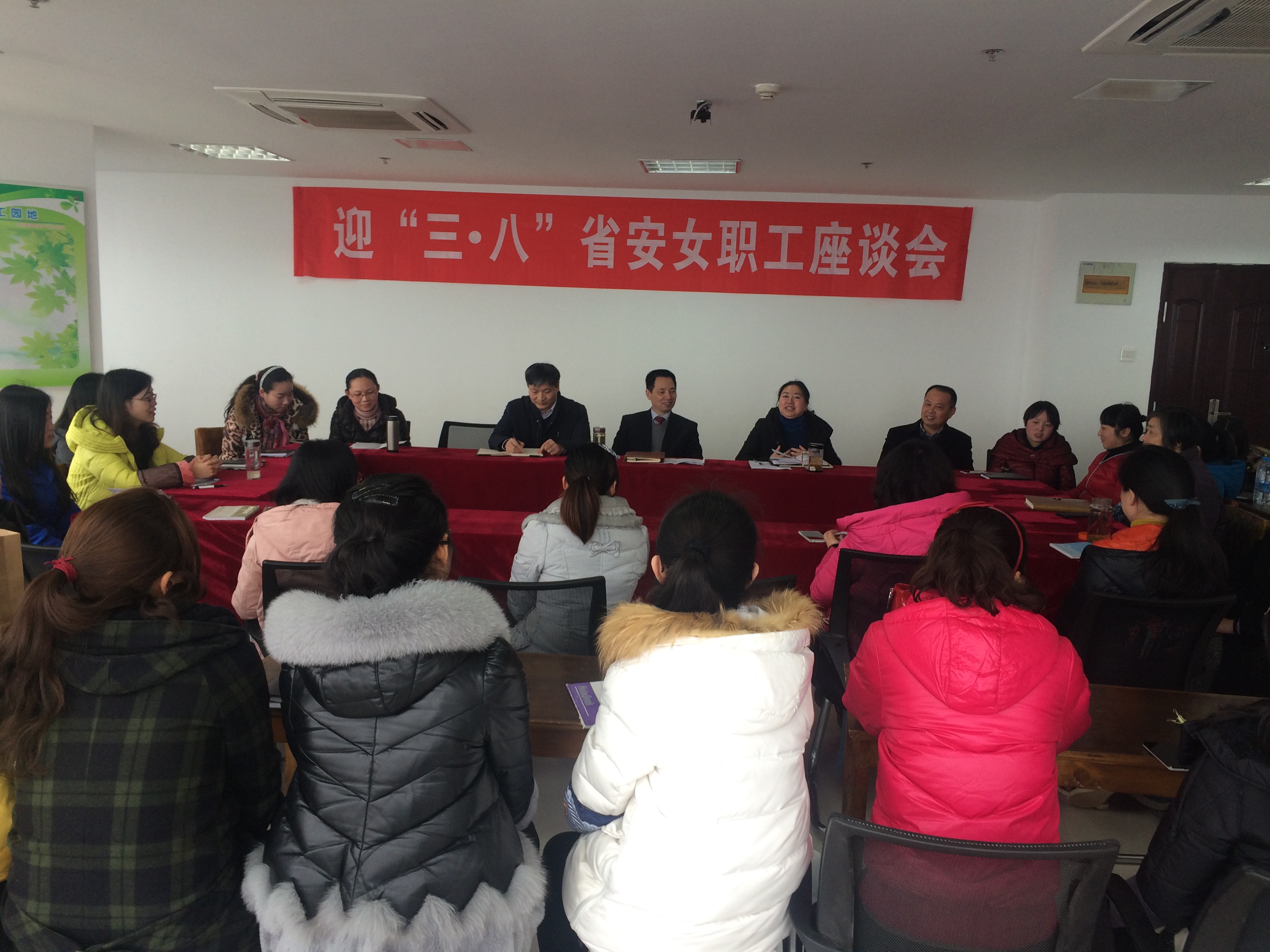 3月6日下午,公司在職工之家召開了迎“三·八”女職工座談會,機關全體女職工、合肥地區(qū)分公司女職工代表近40人參加了此次座談會。公司黨委副書記、紀委書記胡六中,總工程師吳繼成,總經(jīng)理助理趙榮珣應邀參加了座談會。會議由公司工會主席李原主持。