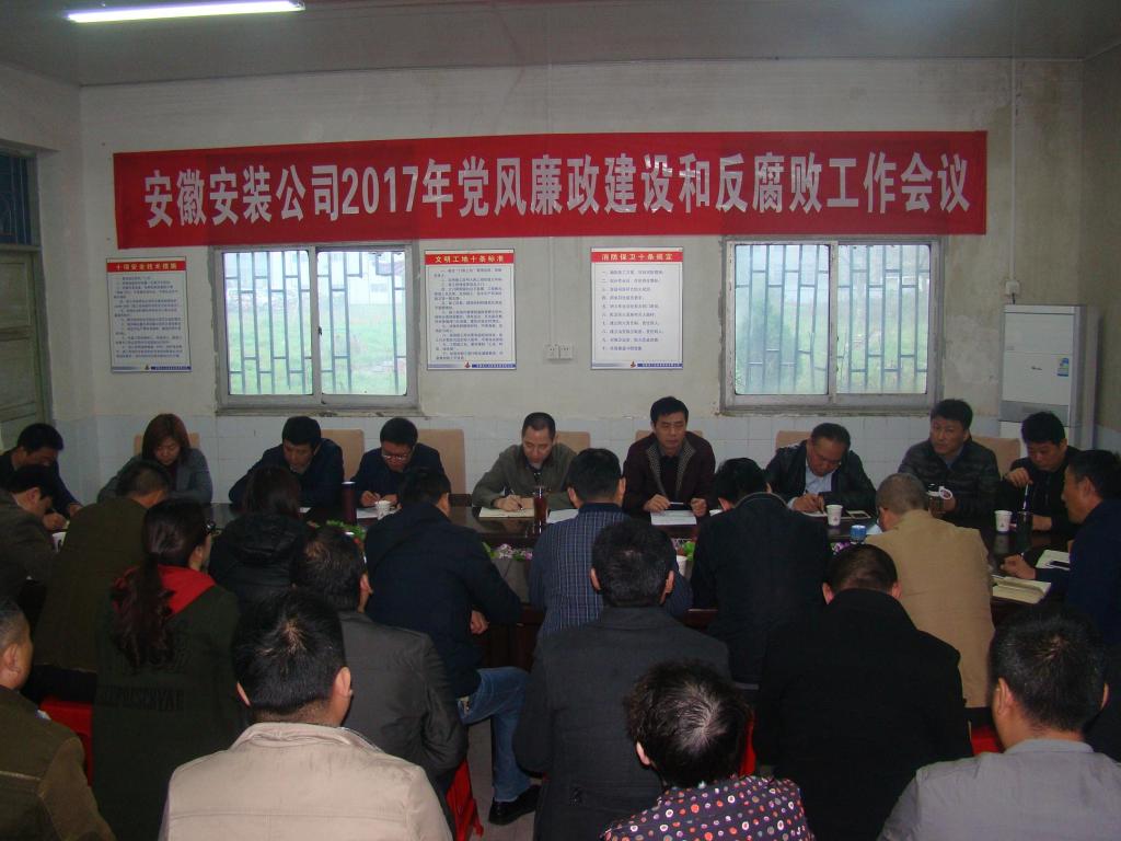3月30日上午,安徽安裝公司黨委在安徽省白湖監(jiān)獄管理分局罪犯醫(yī)療綜合樓工程項目部召開2017年黨風(fēng)廉政建設(shè)和反腐敗工作會議,公司領(lǐng)導(dǎo)班子成員、中層以上管理人員、部分項目經(jīng)理及白湖監(jiān)獄罪犯綜合樓項目管理干部50多人參加了會議。會議由公司紀(jì)委書記、工會主席李寬旭主持。