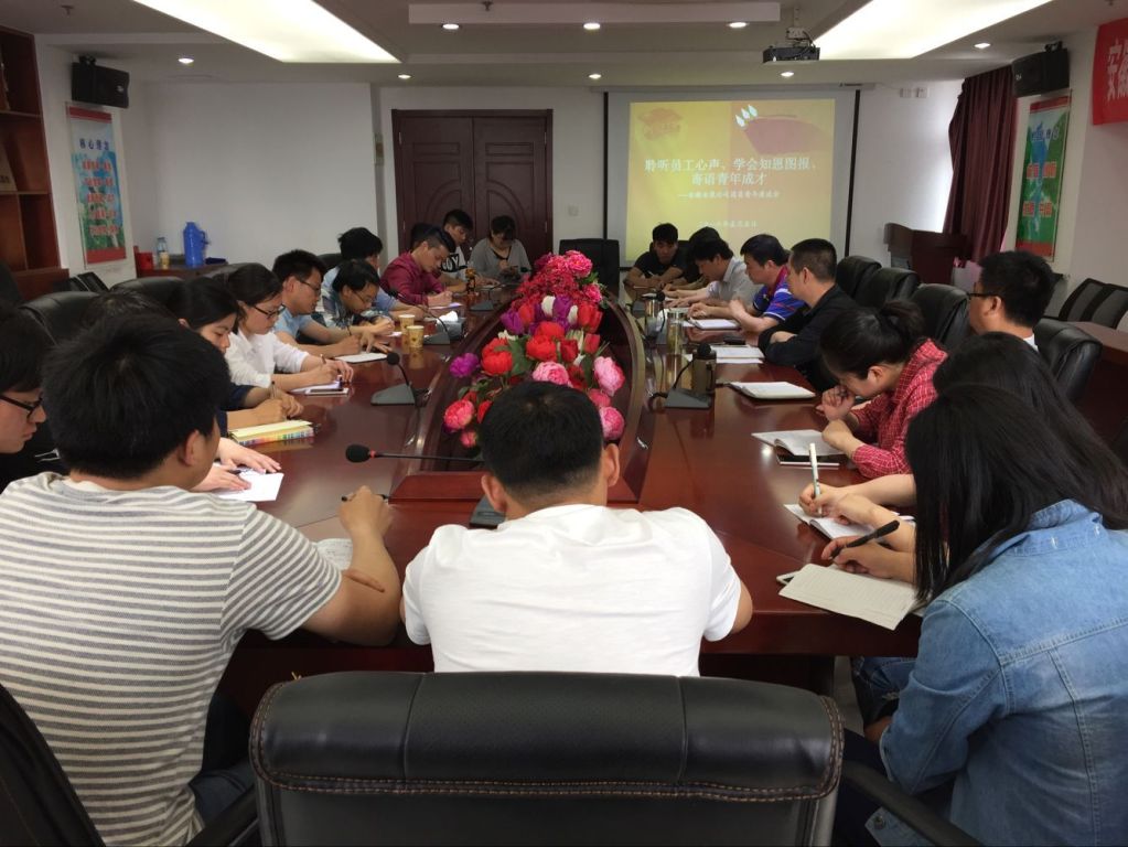 5月5日下午,安徽安裝公司團(tuán)委召開(kāi)了以“聆聽(tīng)員工心聲、學(xué)會(huì)知恩圖報(bào)、寄語(yǔ)青年成才”為主題的團(tuán)員青年座談會(huì),公司黨委書(shū)記、副總經(jīng)理胡六中,紀(jì)委書(shū)記、工會(huì)主席李寬旭,副總經(jīng)理王勝利應(yīng)邀參加了座談會(huì),與各位團(tuán)員青年交流談心。座談會(huì)由公司團(tuán)委書(shū)記王偉主持。