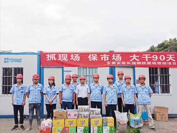 夏日酷暑難耐,高溫導致室外施工作業(yè)困難重重,員工身體負擔較大,公司工會準備了綠豆、白糖、毛巾、十滴水、香皂、飲料等防暑降溫食品、藥品,專程送到長強鋼鐵項目工地。在施工現(xiàn)場公司領導李寬旭書記親手將一箱箱、一件件物品送到項目班組職工的手中,讓項目所有參戰(zhàn)人員烈日高溫下感受到絲絲清涼。
