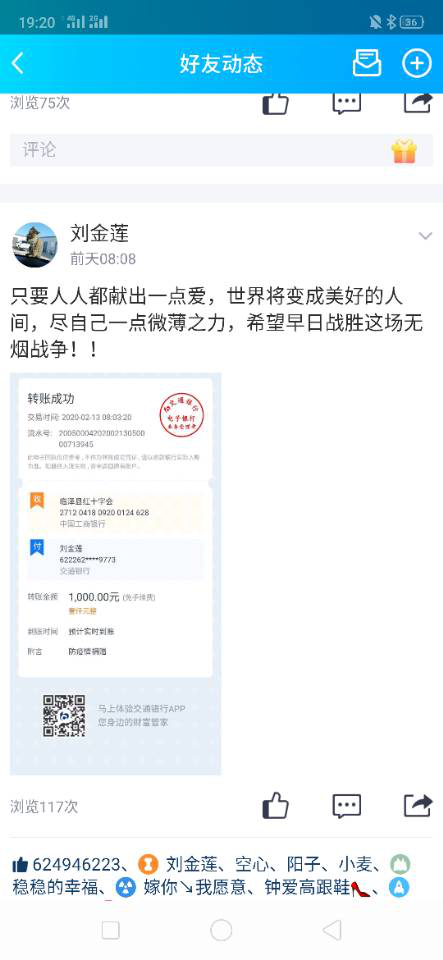 談到此次捐款,她表示自己的行為是一件小事,她說(shuō)作為一名年輕母親,她看到那么多的醫(yī)護(hù)人員,能夠舍小家為大家,她深受感動(dòng),希望能夠?yàn)樯鐣?huì)做一點(diǎn)有意義的事情,她雖然不能到武漢一線去,但是希望盡自己的一份綿薄之力,奉獻(xiàn)一份愛心,幫助更多的困難人度過這次難關(guān)。