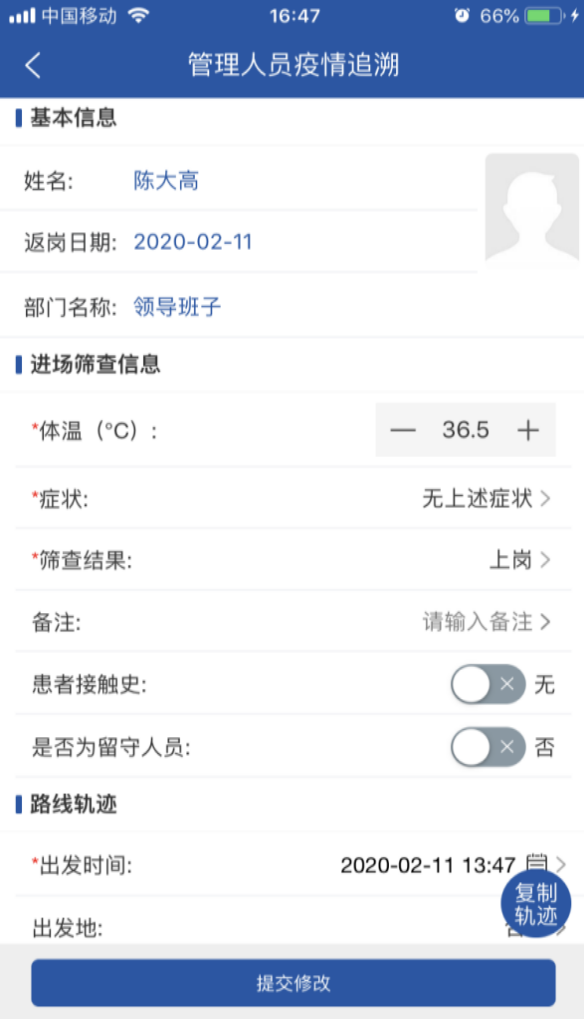 為嚴(yán)格落實復(fù)工復(fù)產(chǎn)和屬地防控責(zé)任的工作要求,有效防控疫情的輸入和擴散,阜陽市潁東區(qū)中醫(yī)院建設(shè)ppp項目全面推行“返崗復(fù)工疫情防控系統(tǒng)”APP,借助這一平臺確保項目部實時、準(zhǔn)確、有效地掌握現(xiàn)場人員的健康情況,助力疫情防控工作。