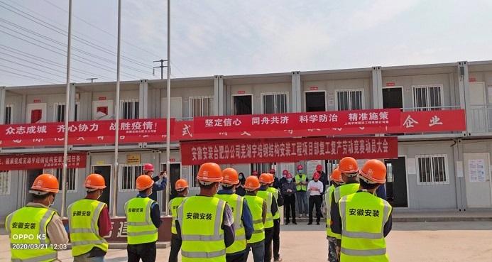 為確保年度各項(xiàng)目目標(biāo)任務(wù)順利完成,貫徹落實(shí)集團(tuán)和安裝公司兩級職代會及疫情防控、復(fù)工復(fù)產(chǎn)工作推進(jìn)會精神,3月21日上午,安徽安裝召開蕪湖宇培裝配生產(chǎn)基地項(xiàng)目“大干90天”勞動競賽動員會。公司黨委書記、董事長胡六中,紀(jì)委書記、工會主席李寬旭,合肥分公司領(lǐng)導(dǎo)班子成員、項(xiàng)目管理人員和施工班組參加了競賽動員會。