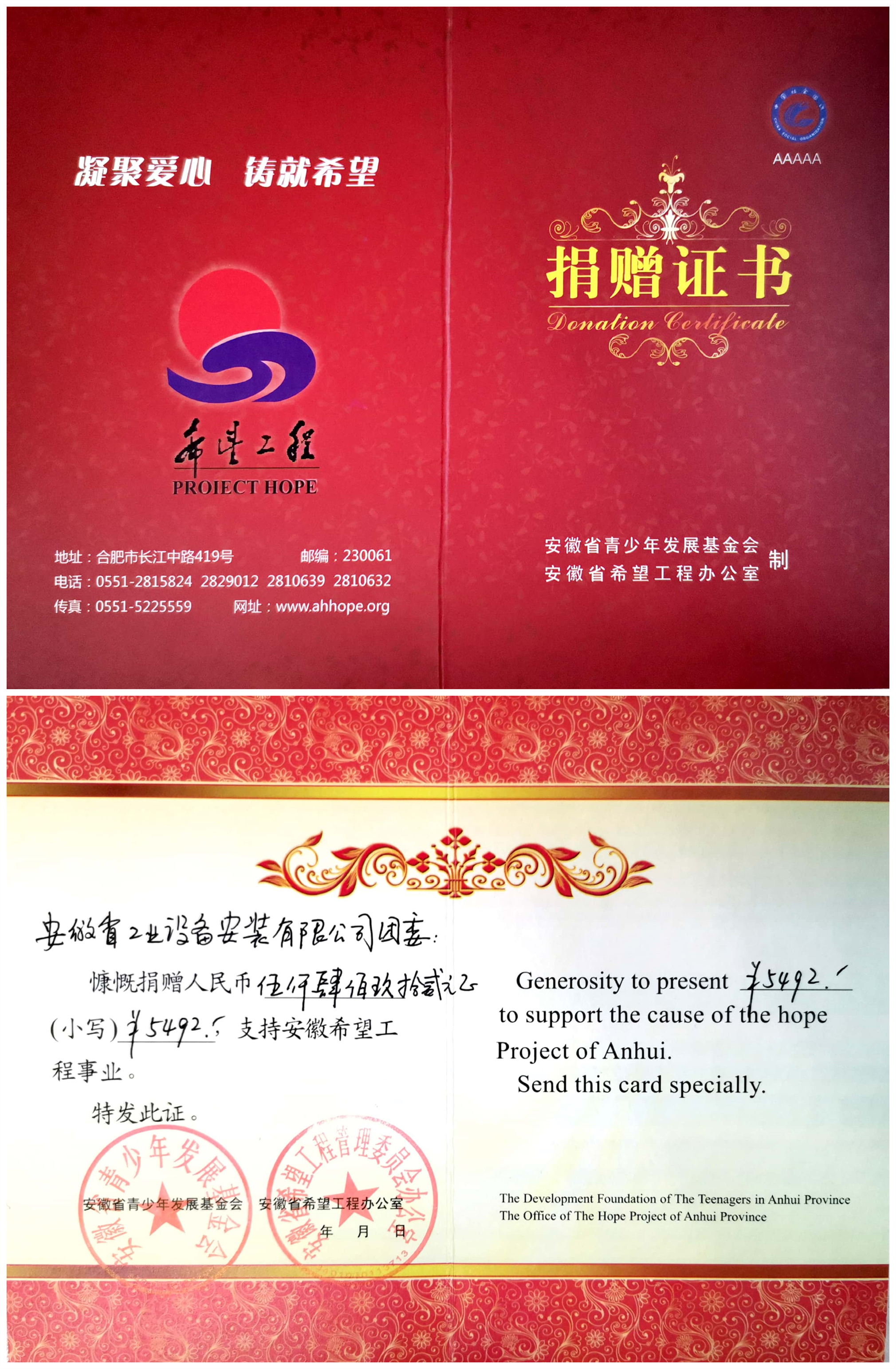 今年的3月5日是第57個“學雷鋒紀念日”。近日,安徽安裝公司團委組織開展了愛心捐款活動。此次捐款得到廣大團員青年熱烈響應,共收到捐款5492元,目前已全部捐贈至安徽省青少年發(fā)展基金會。
