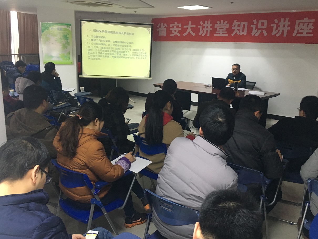 12月7日上午“省安大講堂”—招標(biāo)業(yè)務(wù)培訓(xùn)在職工之家開課。本次培訓(xùn)由招標(biāo)辦副經(jīng)理李文山授課,公司機關(guān)、分公司、項目部相關(guān)人員共30余人參加。