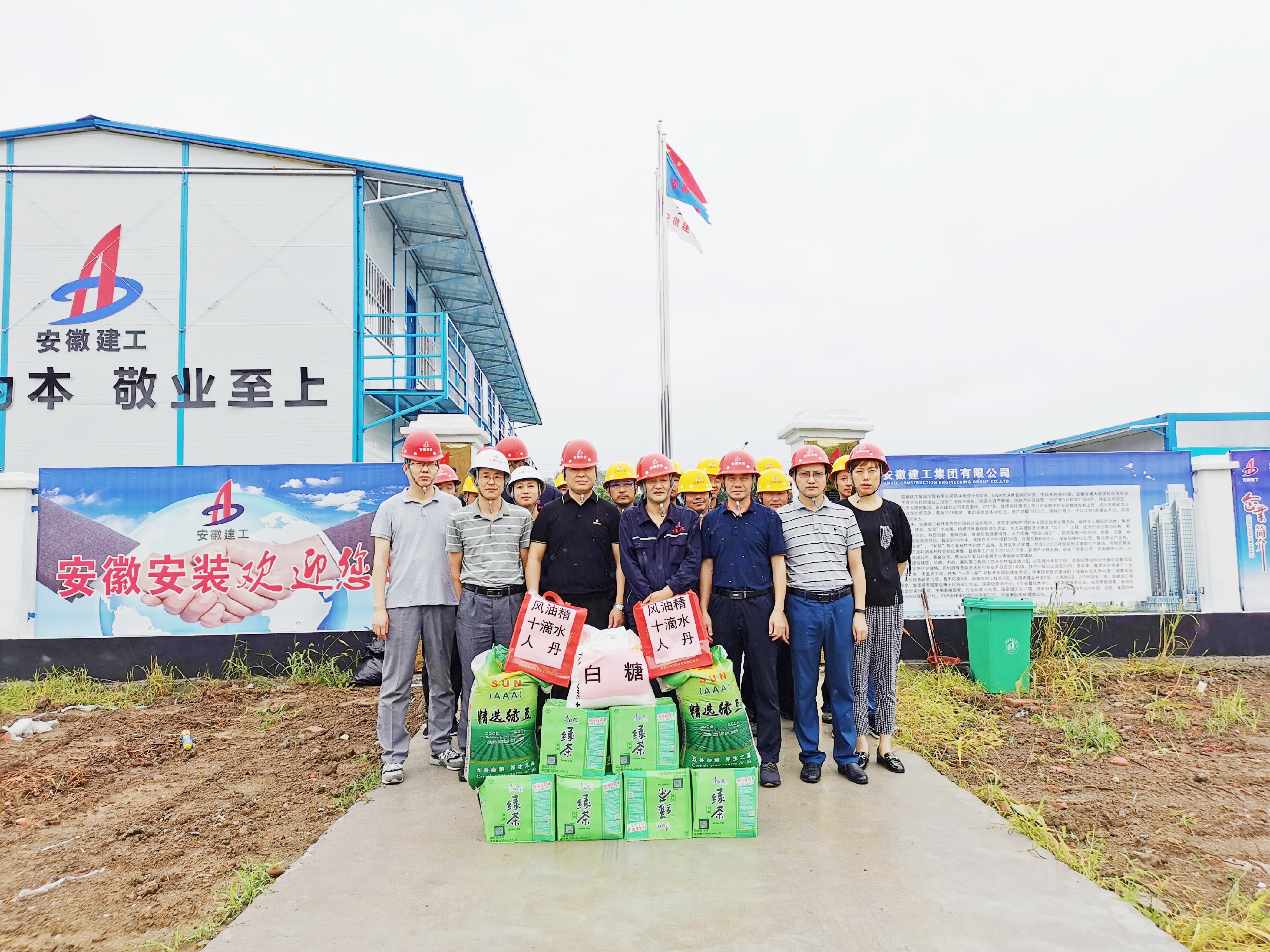 7月17日上午,公司領(lǐng)導(dǎo)走訪慰問了合肥分公司蕪湖宇培鋼結(jié)構(gòu)項(xiàng)目部,為高溫天氣堅(jiān)守在工作一線的項(xiàng)目部員工帶來了夏日防暑的常用藥品及飲料、綠豆、白糖、茶葉等。要求項(xiàng)目部堅(jiān)持以人為本,一定要做好常態(tài)化疫情防控、防暑降溫、雨期安全工作,尤其是高溫、大風(fēng)等極端天氣更要精心部署,合理安排作業(yè)內(nèi)容,避開高溫時(shí)段施工,每日班前做好員工精神狀態(tài)確認(rèn),安全提醒到位,確保高溫季節(jié)一線職工安全度暑。