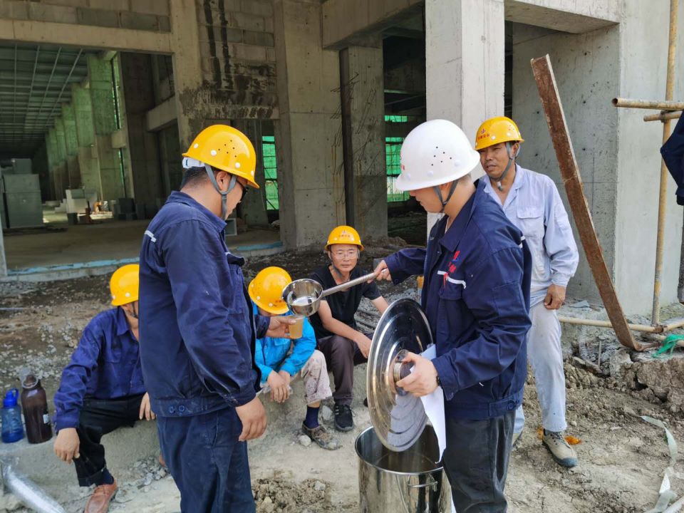 一是認真做好防暑降溫工作。及時召開項目專題會議,全面落實防暑降溫及勞動保護措施。項目部為各施工班組配發(fā)了人丹、十滴水、風油精等防暑降溫藥品,每天定時將綠豆湯、茶水等送到各施工點,確保飲食及環(huán)境衛(wèi)生,并合理調(diào)整作業(yè)時間,確保施工人員“清涼”到位。