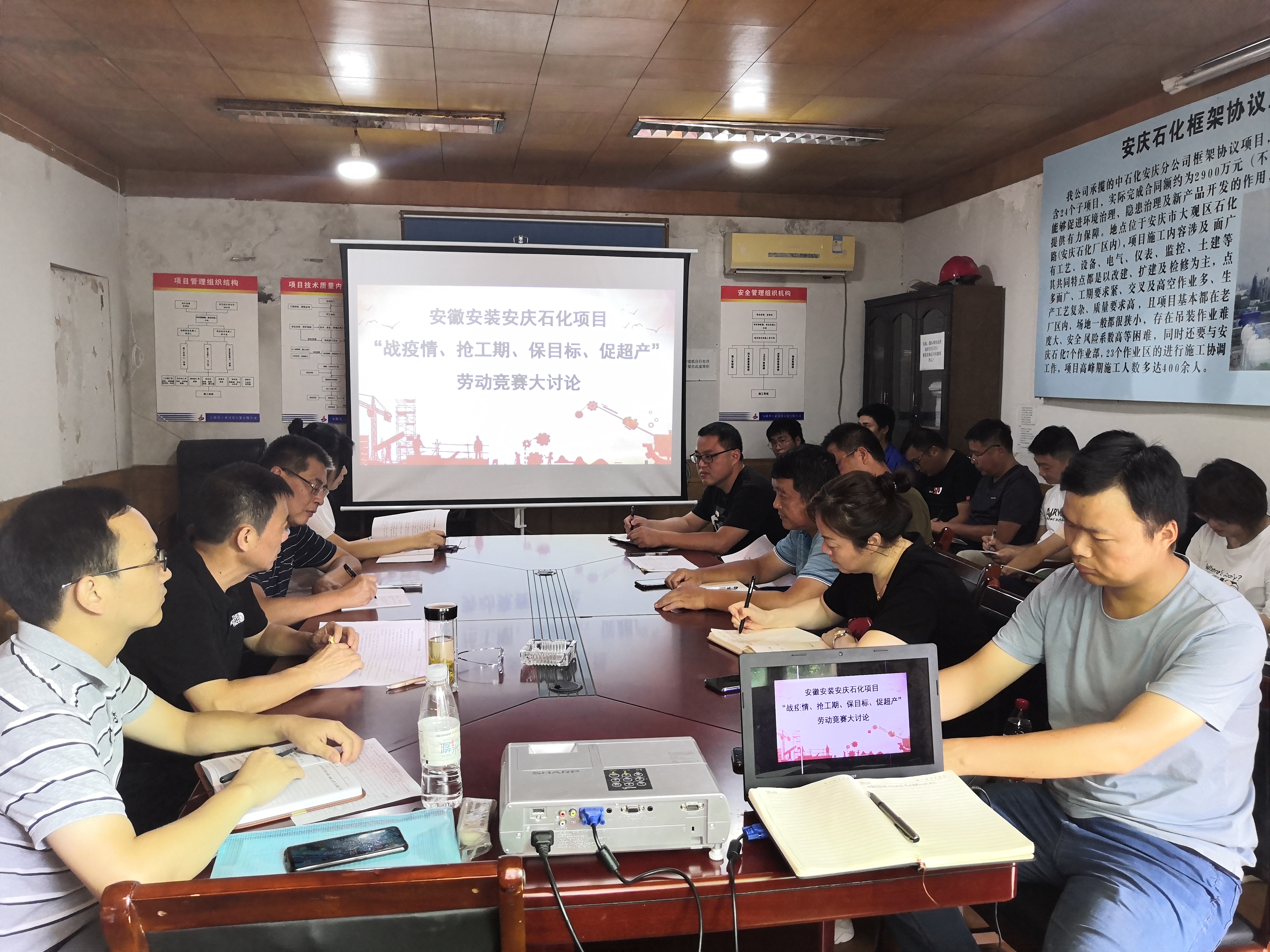 為認真貫徹集團公司“戰(zhàn)疫情、搶工期、保目標、促超產(chǎn)”勞動競賽活動精神,8月20日上午,安徽安裝公司圍繞“不能按時交工為恥辱”的履約意識,在安慶石化項目部會議室組織開展“戰(zhàn)疫情、搶工期、保目標、促超產(chǎn)”主題大討論活動。公司紀委書記、工會主席李寬旭,總會計師張元斌,公司相關(guān)部門負責(zé)人,安慶分公司領(lǐng)導(dǎo)班子成員,項目經(jīng)理、技術(shù)負責(zé)人等共20余人參加會議,會議由李寬旭主持。