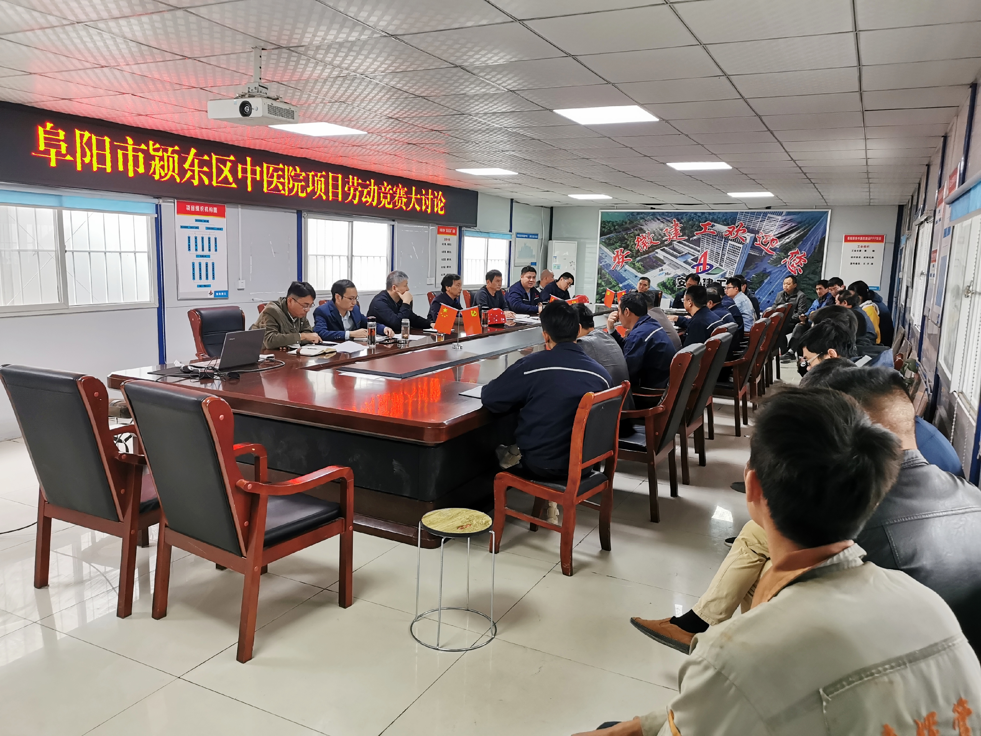 為認(rèn)真貫徹集團(tuán)公司“戰(zhàn)疫情、搶工期、保目標(biāo)、促超產(chǎn)”勞動(dòng)競(jìng)賽活動(dòng)精神,11月5日上午,公司副總經(jīng)理高飛,紀(jì)委書記、工會(huì)主席李寬旭,總工程師吳繼成一行在阜陽(yáng)潁東區(qū)中醫(yī)院建設(shè)PPP項(xiàng)目部會(huì)議室,組織開展“戰(zhàn)疫情、搶工期、保目標(biāo)、促超產(chǎn)”勞動(dòng)競(jìng)賽大討論,公司相關(guān)部門負(fù)責(zé)人、項(xiàng)目部全體人員30余人參加了會(huì)議,會(huì)議由李寬旭主持。