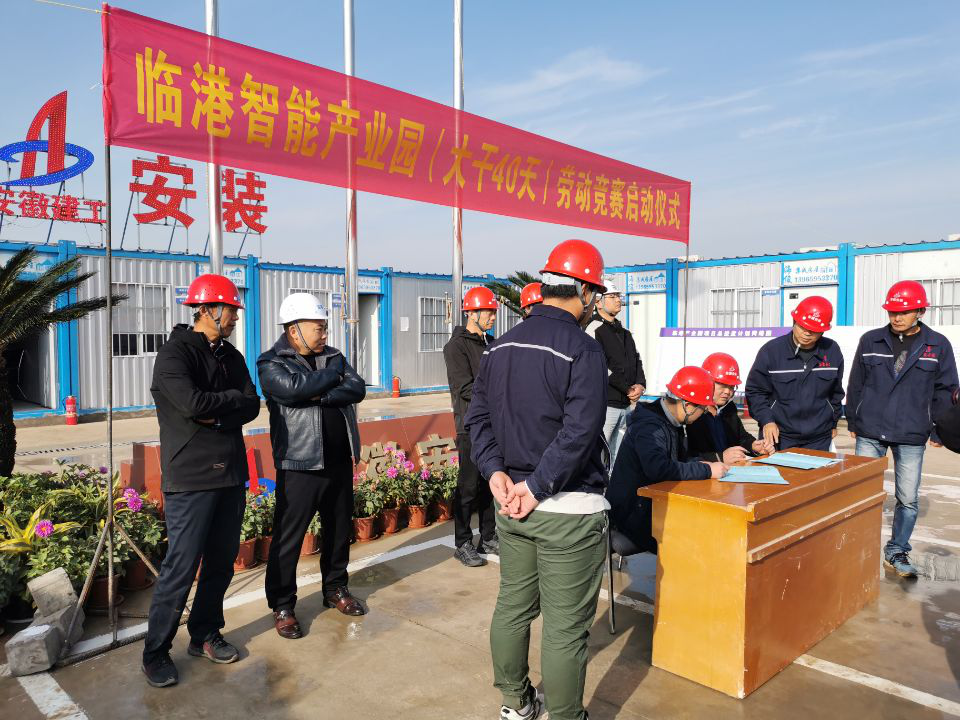 為確保年度各項目標(biāo)任務(wù)順利完成,貫徹落實(shí)集團(tuán)公司開展“戰(zhàn)疫情、搶工期、保目標(biāo)、促超產(chǎn)”為主題勞動競賽活動精神,2020年11月19日上午,安徽安裝召開蚌埠臨港項目“大干40天”勞動競賽動員會。公司紀(jì)委書記、工會主席李寬旭,公司相關(guān)部門負(fù)責(zé)人,業(yè)主現(xiàn)場派駐代表李先鋒,總監(jiān)代表姚明,項目勘察單位、設(shè)計單位代表,蚌埠分公司領(lǐng)導(dǎo)班子成員,項目管理人員和勞務(wù)單位共計50余人參加活動。