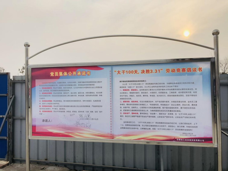 現(xiàn)場(chǎng)施工如火如荼,黨建引領(lǐng)功不可沒(méi)。分公司黨支部注重發(fā)揮支部的戰(zhàn)斗堡壘作用和項(xiàng)目黨員的先鋒模范作用。一方面積極做好項(xiàng)目宣傳及食堂等各項(xiàng)后勤保障工作,一方面堅(jiān)持將“一名黨員就是一面旗幟”的思想灌輸?shù)矫總€(gè)項(xiàng)目黨員的心中。通過(guò)在項(xiàng)目上開(kāi)展“黨員先鋒崗、黨員公開(kāi)承諾踐諾”等主題實(shí)踐活動(dòng),確保黨員在關(guān)鍵時(shí)刻能夠站得出、頂?shù)米?。自?xiàng)目開(kāi)工至今,項(xiàng)目班子成員帶頭“5+2、白加黑”每天盯在施工現(xiàn)場(chǎng),項(xiàng)目經(jīng)理共產(chǎn)黨員張漢軍深知“開(kāi)工即是決戰(zhàn)“的艱巨任務(wù),帶頭加班加點(diǎn)、攻堅(jiān)克難,做好現(xiàn)場(chǎng)溝通協(xié)調(diào),安排各項(xiàng)工作,期間沒(méi)有一天休息。項(xiàng)目副經(jīng)理、共產(chǎn)黨員孫浩家住合肥,也主動(dòng)放棄周末返家團(tuán)聚的日子,把2個(gè)年幼的孩子交給妻子照顧,義無(wú)反顧投身到項(xiàng)目搶工中,吃住在施工現(xiàn)場(chǎng)靠前指揮,抓進(jìn)度、查質(zhì)量,在他的微信朋友圈里一句“聚少離多的日子里,每一次離家出行,心中總是充滿(mǎn)了不舍”道出了對(duì)家庭和妻兒無(wú)盡的愧疚與無(wú)奈······共產(chǎn)黨員彭陸、梁興邵、鄭玉龍、丁鈺哲等也都在自己的工作崗位上辛勤勞作默默付出,用責(zé)任和行動(dòng)詮釋了一名共產(chǎn)黨員的初心和擔(dān)當(dāng)。正是在項(xiàng)目黨員舍小家為大家的奉獻(xiàn)精神和“勇?lián)?dāng)、強(qiáng)作為、當(dāng)先鋒”模范作用的感召下,康寧項(xiàng)目全體參建人員積極發(fā)揚(yáng)“特別能吃苦、特別能戰(zhàn)斗”的企業(yè)作風(fēng),凝心聚力、心往一處想,勁往一處使,主動(dòng)加班加點(diǎn)搶進(jìn)度,得到業(yè)主方和總包方的高度評(píng)價(jià)與認(rèn)可。在充分展現(xiàn)安徽安裝精湛的專(zhuān)業(yè)技術(shù)和優(yōu)質(zhì)的履約服務(wù)意識(shí)同時(shí),也樹(shù)立起企業(yè)良好形象。