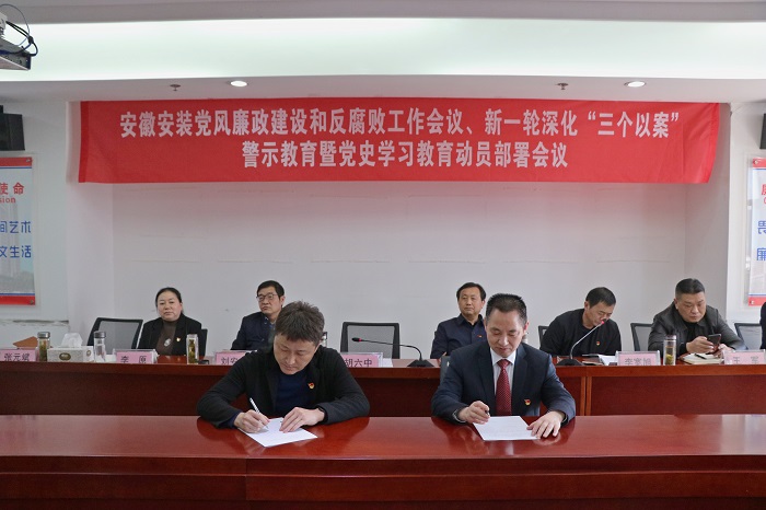 期間,公司黨委與所屬各黨支部簽訂了《黨風廉政建設責任書》,公司中層管理人員簽訂了《廉潔自律承諾書》。會議以現(xiàn)場加視頻形式召開。公司領導班子成員、機關中層管理人員、在肥地區(qū)分公司領導班子成員及機關全體黨員在主會場參會;所屬分公司領導班子成員在視頻分會場參會。