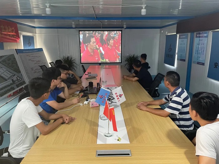 房建(裝飾)分公司定遠壹石通項目部人員集中觀看大會直播