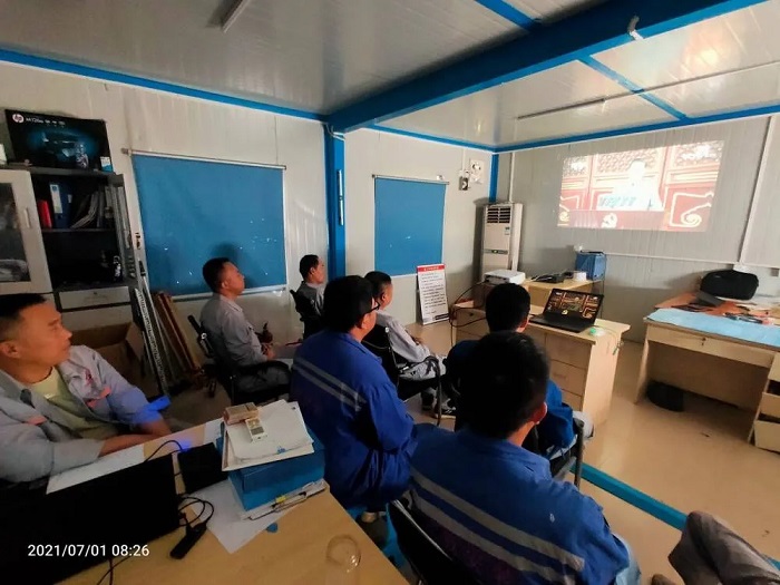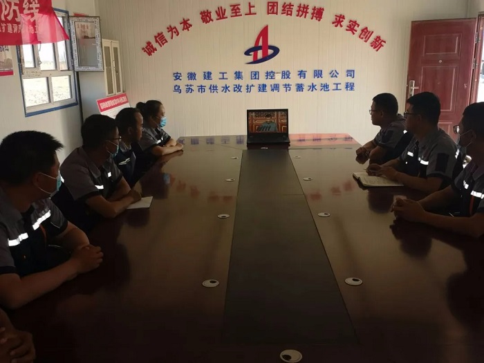 新疆烏蘇分公司烏蘇市供水改擴建調(diào)節(jié)蓄水池項目部人員集中觀看大會直播