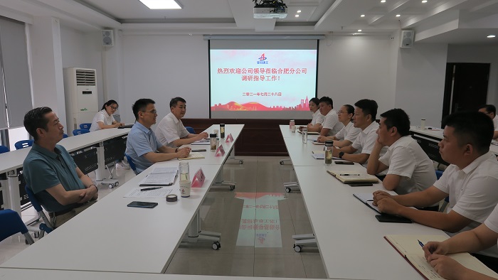 7月28日下午,公司黨委副書記、董事、副總經(jīng)理周正平,黨委委員、紀委書記、工會主席李楊,黨委委員、副總經(jīng)理趙伯平蒞臨合肥分公司調研指導工作,分公司領導班子成員、機關部門負責人,在肥項目經(jīng)理參加調研會。