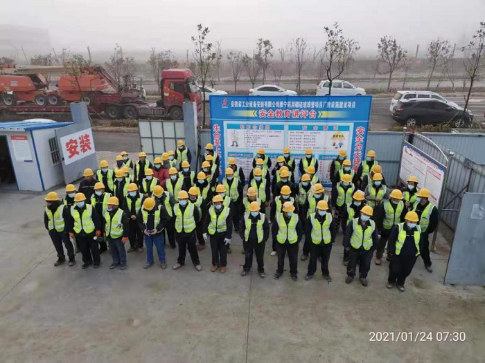 康寧項目的承接開啟了安徽安裝與安徽水利項目合作新模式。作為外企項目,該工程工期履約要求嚴苛,施工工藝要求高,驗收標準嚴格,遠超出國內(nèi)工程要求。項目承接初期,無數(shù)個未知擺在建設者面前,項目施工壓力巨大。公司意識到這是一場“開工即是決戰(zhàn)”的硬仗。為此,公司高度重視,成立了由公司領導和相關部門組成的項目指揮部,從分公司調(diào)配精兵強將組建項目部,一場與時間賽跑的施工就此拉開了序幕。