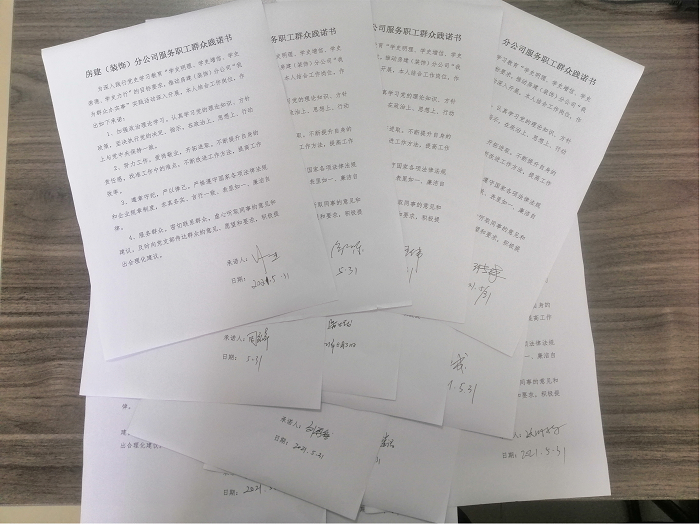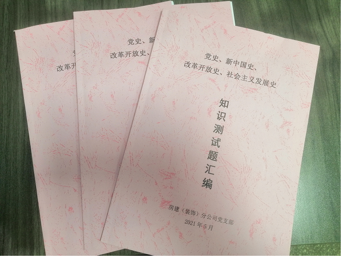 會(huì)議最后,所有與會(huì)人員簽訂了《房建(裝飾)分公司服務(wù)職工群眾踐諾書(shū)》,布置下發(fā)了《黨史、新中國(guó)史、改革開(kāi)放史、社會(huì)主義發(fā)展史知識(shí)測(cè)試題匯編》。