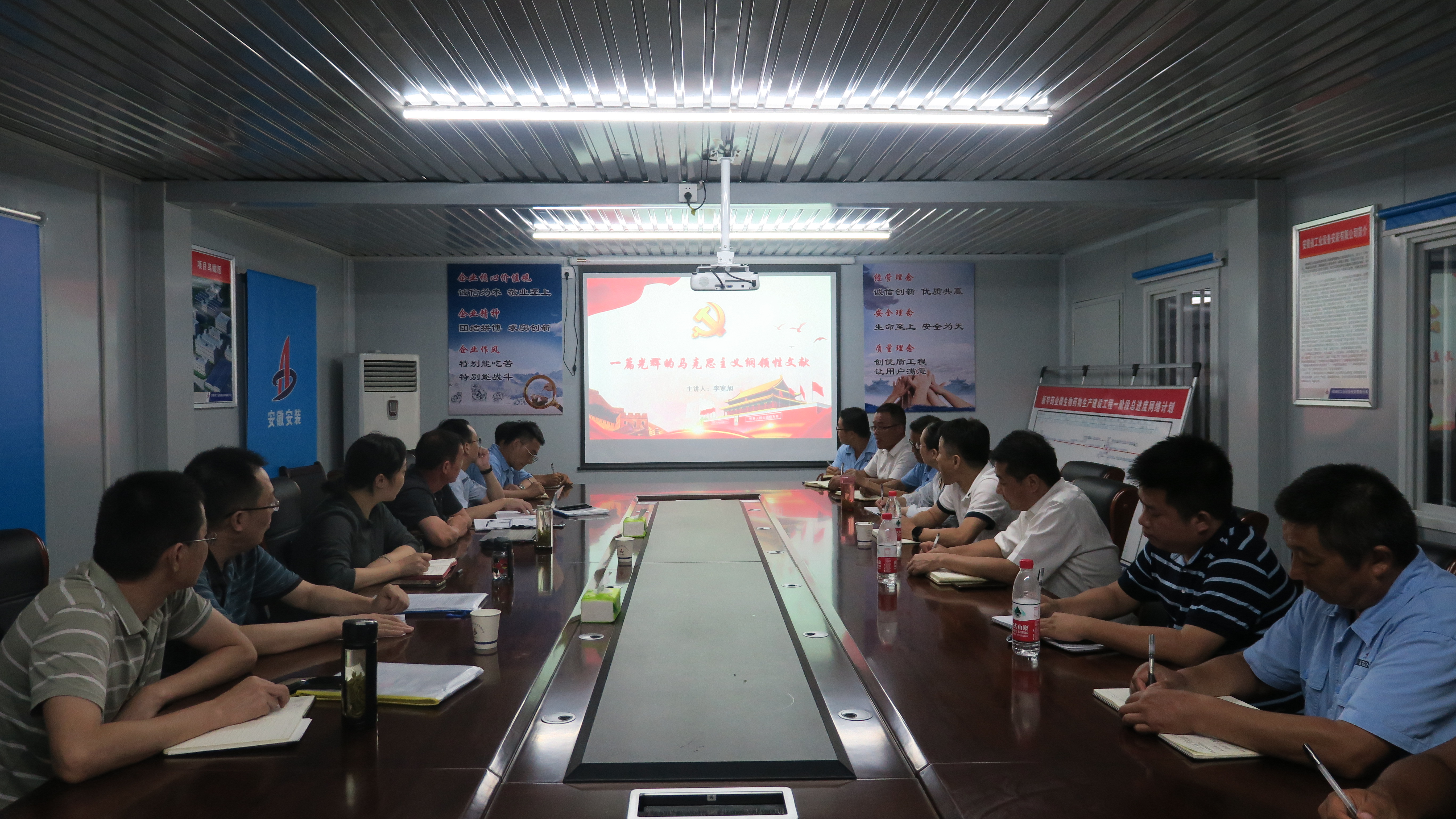 為深入學習貫徹習近平總書記在慶祝建黨100周年大會上的重要講話精神,教育引導廣大黨員干部和職工群眾,從黨的百年歷程中汲取智慧養(yǎng)分,激發(fā)前進動力,7月19日下午,公司紀委書記、工會主席李寬旭赴合肥分公司新宇藥業(yè)項目,以“一篇光輝的馬克思主義綱領性文獻”為題,為全體參會人員講授了一堂精彩的專題黨課,公司職工代表巡視組成員、合肥分公司班子成員、新宇藥業(yè)項目部全體員工30余人參加了黨課學習。
