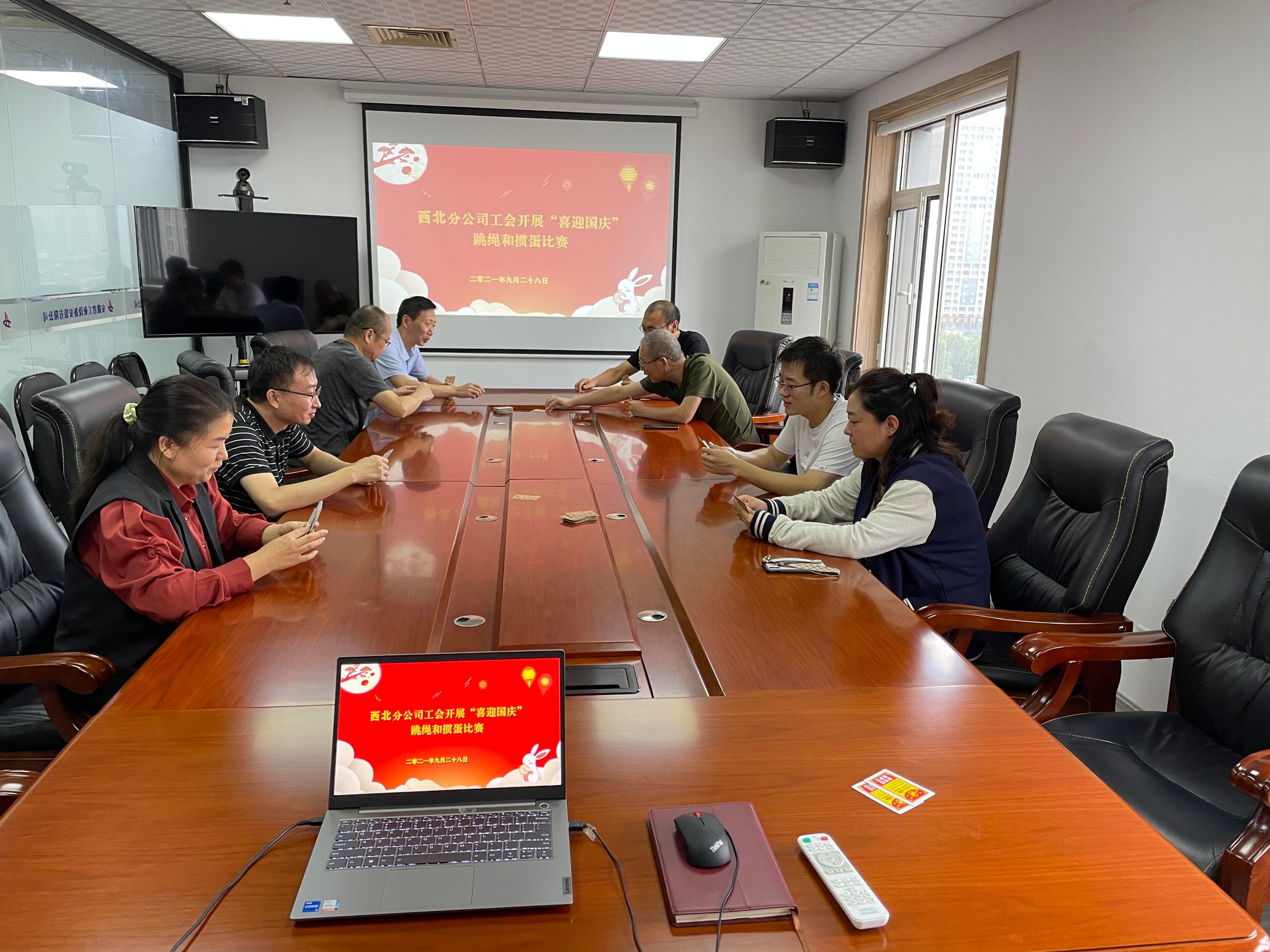 國(guó)慶佳節(jié)來(lái)臨之際,為了增強(qiáng)分公司員工的凝聚力與向心力,調(diào)動(dòng)員工的工作熱情,9月28日上午,西北分公司工會(huì)組織開(kāi)展“喜迎國(guó)慶”跳繩和摜蛋比賽,活動(dòng)由工會(huì)主席許洋主持,分公司全體員工參加比賽。