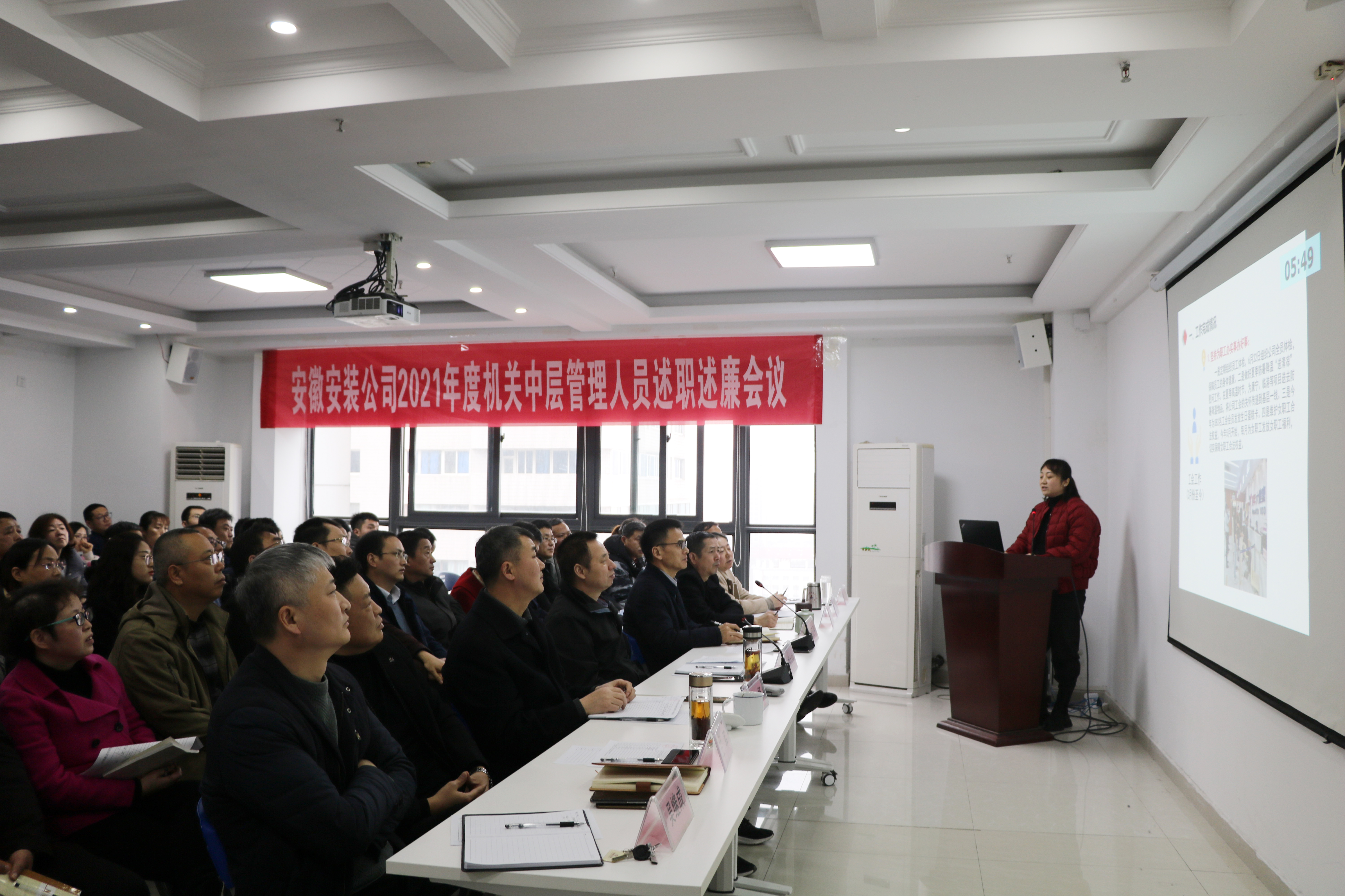 1月10日下午,安徽安裝公司召開2021年度機(jī)關(guān)中層管理人員述職述廉會(huì)議。公司領(lǐng)導(dǎo)班子成員、機(jī)關(guān)中層管理人員、分公司黨政負(fù)責(zé)人、機(jī)關(guān)部門員工代表共70余人參加會(huì)議,公司黨委書記、董事長(zhǎng)胡六中主持會(huì)議。
