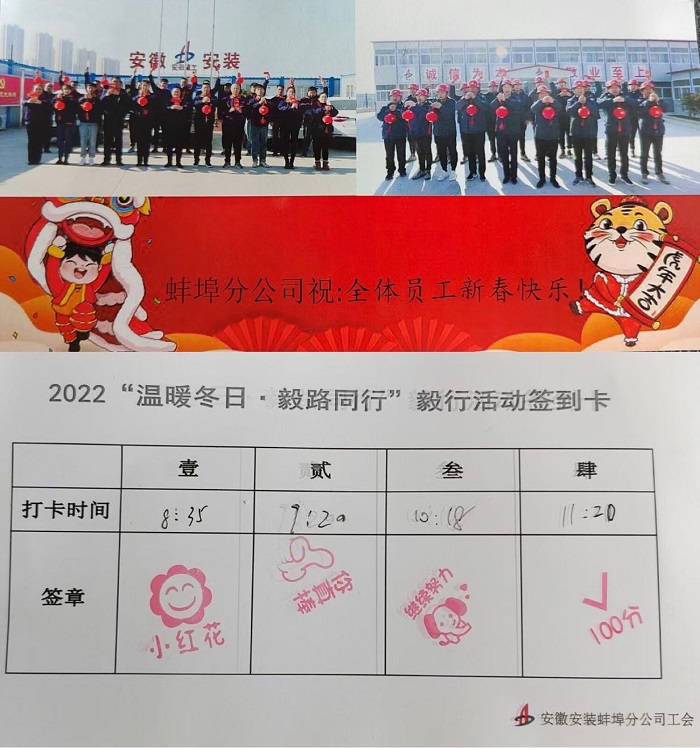 為展示安徽安裝蚌埠分公司員工積極向上的精神風貌,倡導健康環(huán)保的生活理念,1月20日上午,分公司工會舉辦了一場主題為“溫暖冬日 毅路同行”的徒步毅行活動,分公司50余名員工參加活動。