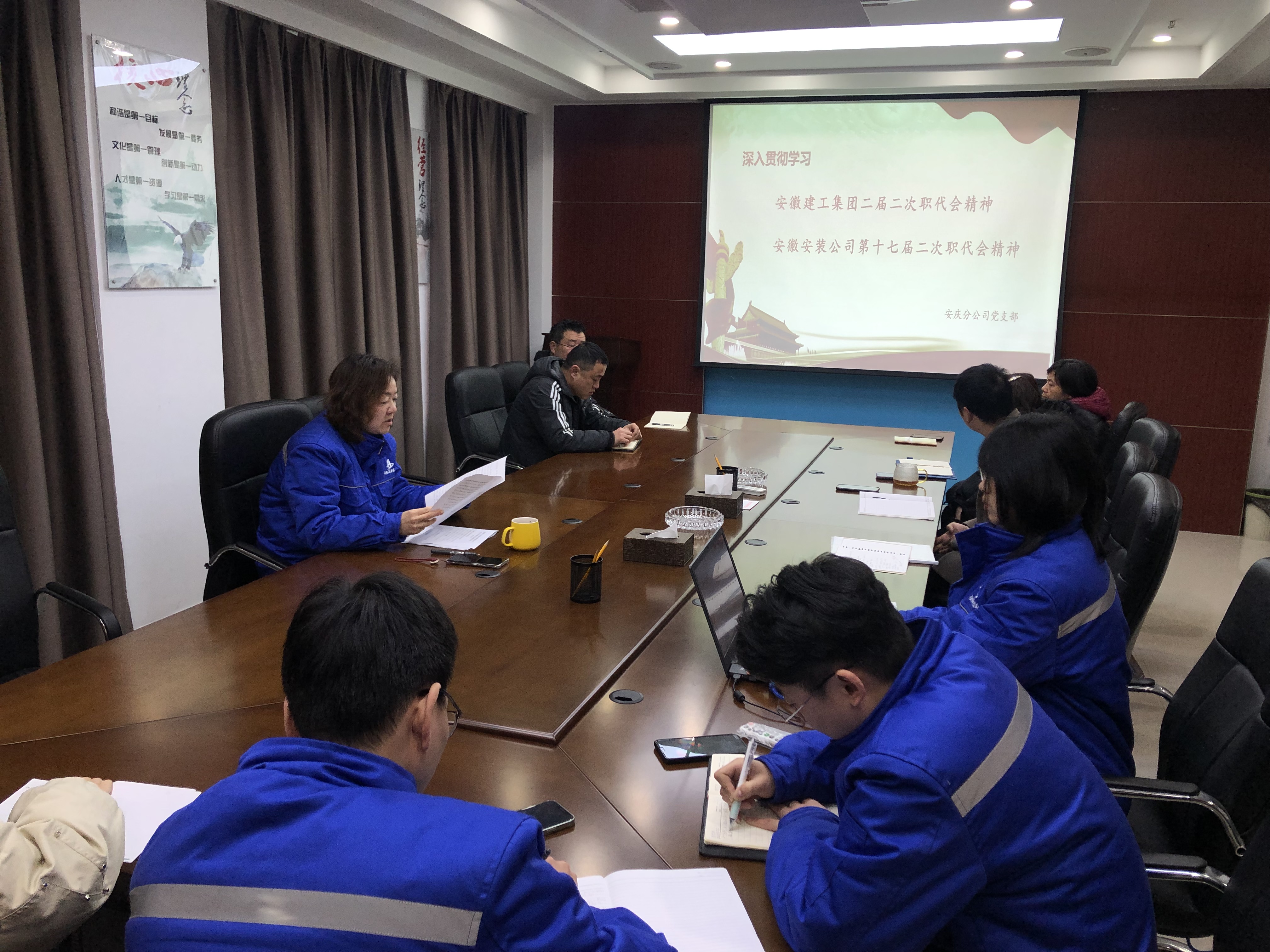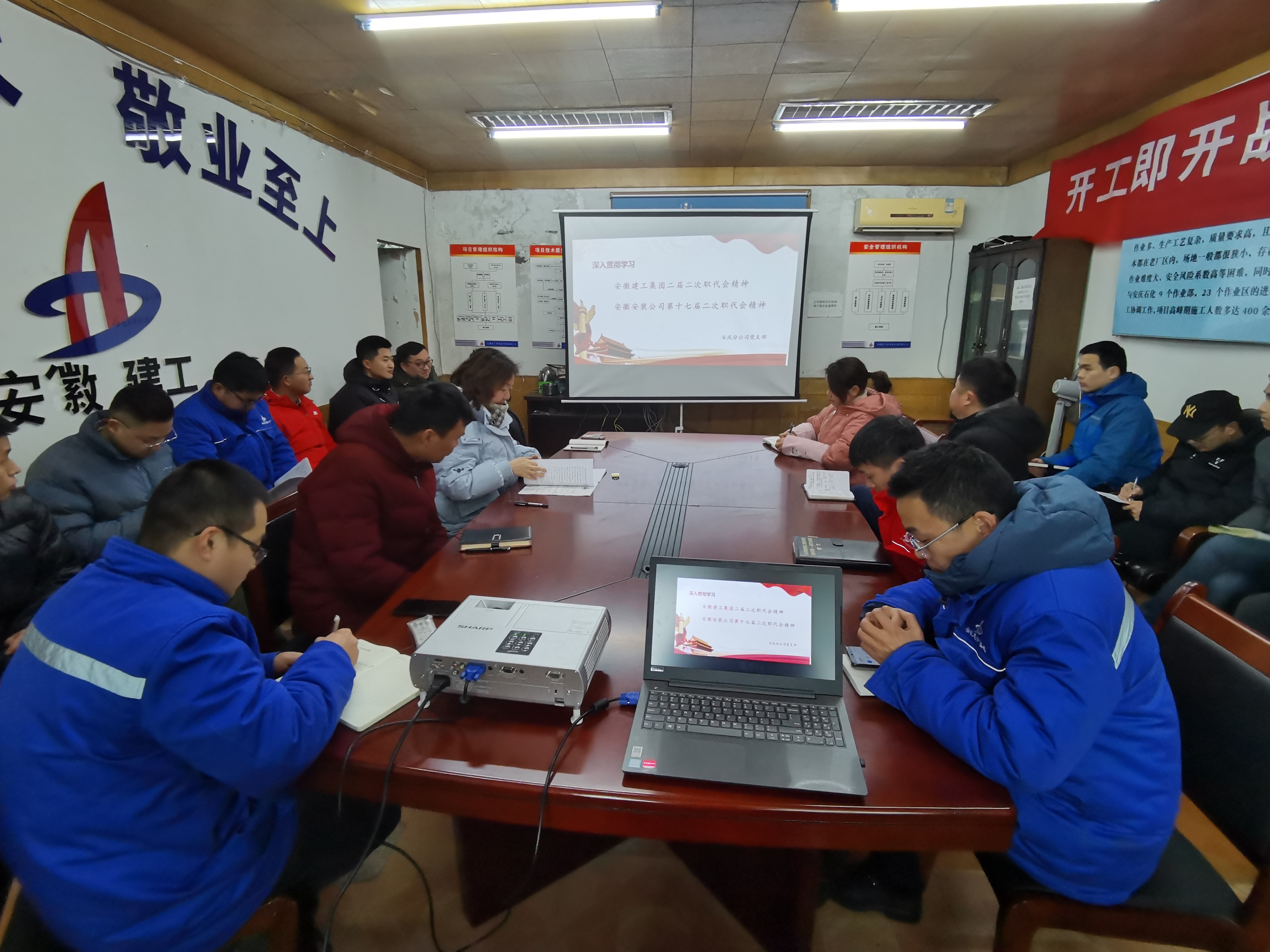 集團(tuán)公司、公司兩級職代會相繼召開之后,2月9日,安慶分公司結(jié)合實(shí)際,迅速在分公司機(jī)關(guān)和項(xiàng)目部分別組織召開了專題學(xué)習(xí)會,積極開展學(xué)習(xí)宣貫兩級職代會精神。會議由分公司黨支部書記劉紅艷主持。