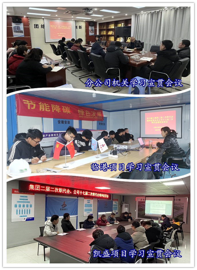 2月10日—11日,在分公司機(jī)關(guān)和各在建項(xiàng)目一線召開兩級職代會精神專題宣貫會。會議由分公司黨支部書記程茂麗主持。會上,程茂麗首先傳達(dá)了集團(tuán)公司黨委書記、董事長趙時(shí)運(yùn)在集團(tuán)二屆二次職代會暨2022年度工作會議作的題為《奮力譜寫安徽建工高質(zhì)量發(fā)展新篇章 以優(yōu)異成績迎接黨的二十大勝利召開》的講話和集團(tuán)黨委副書記、總經(jīng)理、董事劉家靜作的題為《拉高標(biāo)桿、爭創(chuàng)一流 不斷實(shí)現(xiàn)安徽建工更高質(zhì)量更可持續(xù)發(fā)展》的工作報(bào)告;隨后又帶領(lǐng)大家深入解讀了公司黨委書記、董事長胡六中在公司十七屆二次職代會上所作的《守正創(chuàng)新 實(shí)干篤行 強(qiáng)基固本 競進(jìn)提質(zhì) 以趕考姿態(tài)答好安徽安裝高質(zhì)量發(fā)展新答卷》的報(bào)告及《黨建領(lǐng)航聚合力 深度融合強(qiáng)保障 以高質(zhì)量黨建領(lǐng)航安徽安裝高質(zhì)量發(fā)展》的講話。