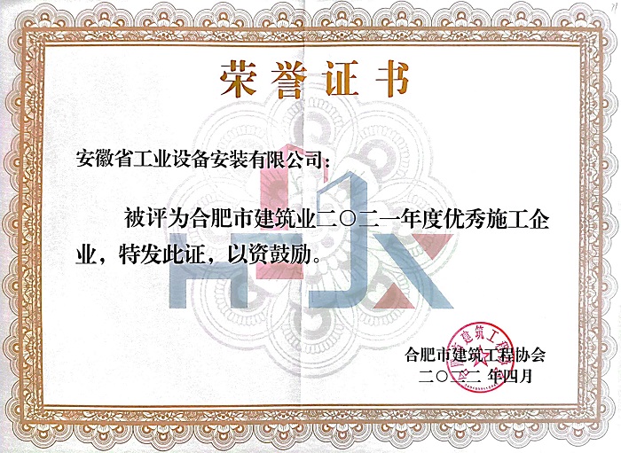 “合肥市優(yōu)秀企業(yè)、單項先進企業(yè)”評選旨在表彰在經(jīng)營管理、質(zhì)量安全、誠信建設(shè)、經(jīng)濟效益和社會效益等方面做出突出成績的施工企業(yè)。近年來,公司在省內(nèi)外市場重合同、守信用,綜合實力在安裝行業(yè)處于領(lǐng)先地位,以良好的經(jīng)營業(yè)績、突出的社會貢獻(xiàn)、深入人心的品牌形象獲得了社會各界的認(rèn)可。