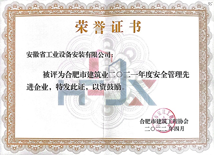 近日,合肥市建筑工程協(xié)會傳來喜訊,2021年度合肥市優(yōu)秀企業(yè)、單項先進企業(yè)的評選已出爐,安徽安裝再次斬獲“合肥建筑業(yè)優(yōu)秀施工企業(yè)”“合肥建筑業(yè)安全管理先進企業(yè)”榮譽稱號。
