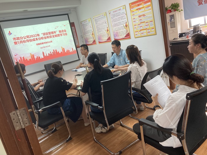 為進(jìn)一步推進(jìn)分公司項(xiàng)目管理年活動(dòng)的開展,5月25日下午市政分公司在分公司會(huì)議室召開“項(xiàng)目管理年”推進(jìn)會(huì)暨5月份成本分析會(huì)議,黨支部書記胡迎東主持會(huì)議,分公司機(jī)關(guān)員工、項(xiàng)目員工參加會(huì)議,會(huì)議以現(xiàn)場加視頻方式召開。