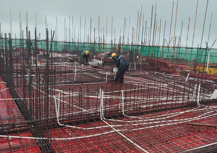 圖為舒城青墩小區(qū)項目高層住宅及地庫的水電及消防工程安裝工程正在搶抓管線預(yù)埋。