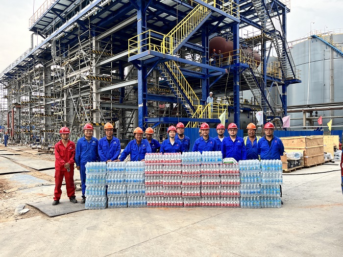 分公司領(lǐng)導(dǎo)班子先后深入安慶石化煉油轉(zhuǎn)化工結(jié)構(gòu)調(diào)整項(xiàng)目200 噸/小時污水汽提裝置、PSA 尾氣回收處理 、腈綸區(qū)域穩(wěn)高壓消防水系統(tǒng)技術(shù)改造等項(xiàng)目,將仁丹、藿香正氣水、礦泉水、鹽汽水等防暑降溫物品送到一線員工手中,讓一線職工感受到公司的關(guān)心與關(guān)愛。班子成員詳細(xì)了解了各項(xiàng)目的施工情況、高溫天氣勞動保護(hù)情況,認(rèn)真傾聽他們的心聲和需要協(xié)調(diào)解決的困難,并叮囑他們注意高溫季節(jié)施工,在保證施工進(jìn)度、質(zhì)量和安全的同時,構(gòu)筑保障一線職工生命安全和身體健康的堅(jiān)固防線。