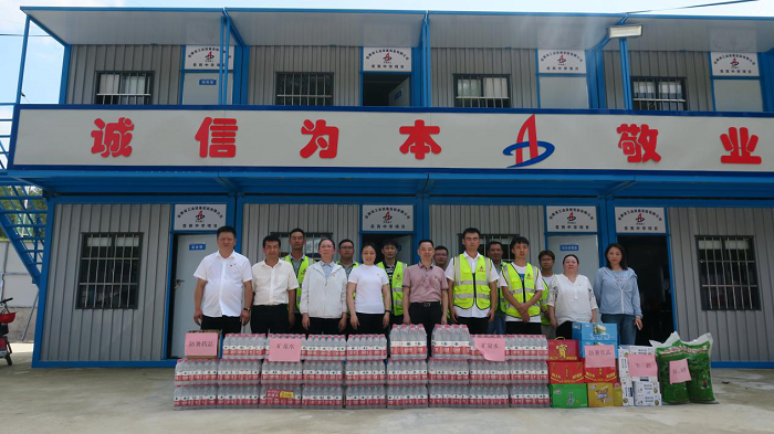 公司工會先后來到岳西中學(xué)建設(shè)項目(一期)安裝工程項目、中石化安慶分公司煉油轉(zhuǎn)化工200噸/小時污水汽提裝置項目、舒城第一中學(xué)遷建項目、四水廠DN1800、DN1400供水管道遷建工程管網(wǎng)項目、花園大道(徽州大道-包河大道)道路工程項目、定遠(yuǎn)壹石通化學(xué)科技廠房項目、凱盛科技超薄柔性玻璃(UTG)二期5#、6#車間及配套設(shè)施工程項目,給廣大一線職工送去白糖、綠豆、礦泉水、飲料、藥品等防暑降溫物品,將工會組織的關(guān)心關(guān)愛傳遞給項目職工。