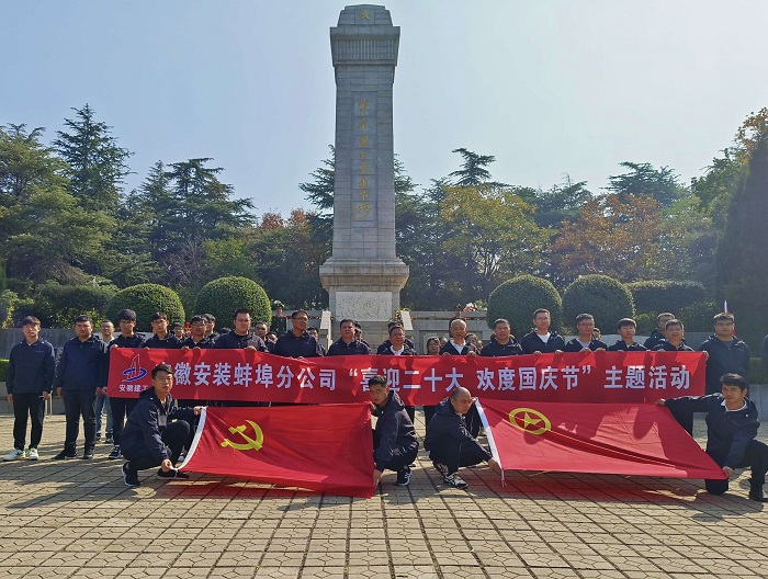 為熱烈慶祝中華人民共和國(guó)成立73周年,喜迎黨的二十大,弘揚(yáng)愛(ài)國(guó)主義精神。9月29日上午,安徽安裝蚌埠分公司黨支部赴蚌埠市革命歷史紀(jì)念館組織開(kāi)展愛(ài)國(guó)主義主題黨日活動(dòng),分公司全體黨員、青年團(tuán)員及職工群眾參加此次活動(dòng)。