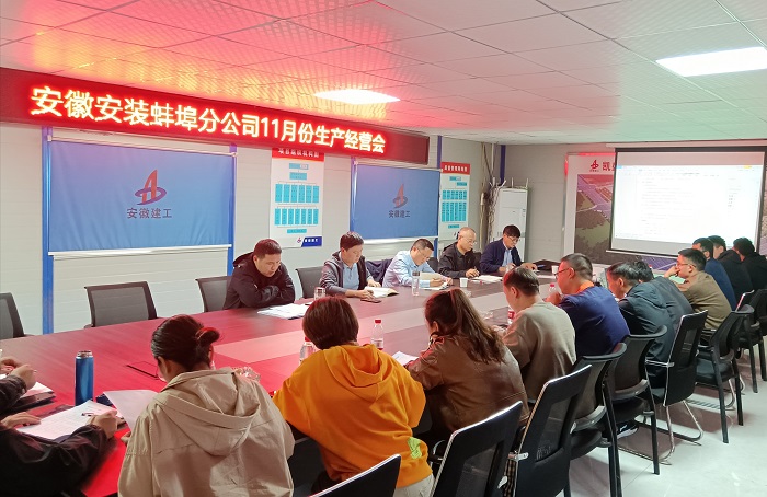 11月10日,蚌埠分公司在凱盛項目部召開11月份生產(chǎn)經(jīng)營會。分公司領(lǐng)導班子成員、各項目主要負責人、機關(guān)各部門負責人及工程部全體員工參加會議,會議由分公司副經(jīng)理郭洋主持。