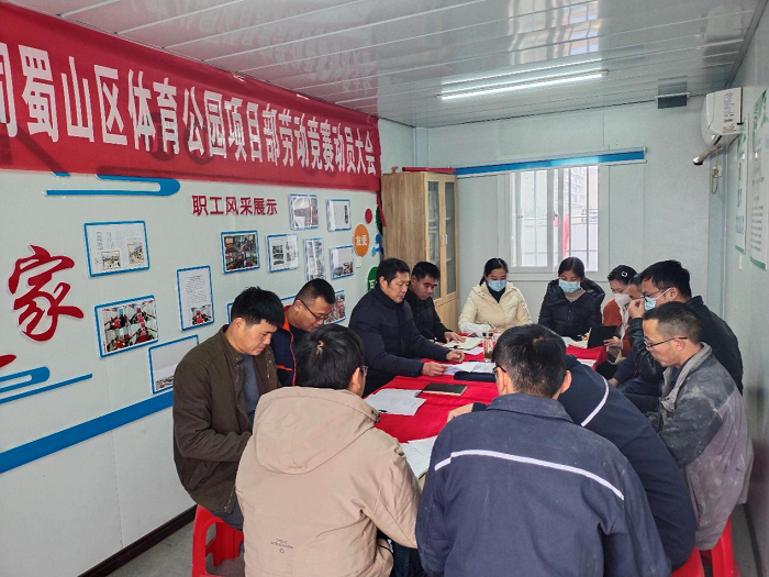 胡迎東作動(dòng)員講話,他指出,在公司上下深入學(xué)習(xí)宣貫黨的二十大精神,搶進(jìn)度、增產(chǎn)值,大力開(kāi)展“強(qiáng)基固本保安康 提質(zhì)增效爭(zhēng)一流”勞動(dòng)競(jìng)賽之際,分公司結(jié)合蜀山體育公園項(xiàng)目工程實(shí)際,繼續(xù)開(kāi)展大干20天勞動(dòng)競(jìng)賽活動(dòng),是為充分調(diào)動(dòng)和激發(fā)項(xiàng)目部全體干部職工的工作熱情,鼓足干勁,大干快上,全面完成蜀山體育公園項(xiàng)目安裝工程施工任務(wù)打通最后一公里。為此他提出四點(diǎn)要求:一是項(xiàng)目部全體職工要繼續(xù)發(fā)揚(yáng)安徽安裝人“特別能吃苦、特別能戰(zhàn)斗”的企業(yè)作風(fēng),不怕疲勞,團(tuán)結(jié)拼搏,按時(shí)完成競(jìng)賽目標(biāo)任務(wù);二是抓細(xì)抓實(shí)過(guò)程施工管控,既要搶工期搶進(jìn)度,又要保質(zhì)量保安全;三是嚴(yán)格競(jìng)賽考核兌現(xiàn)獎(jiǎng)懲機(jī)制,使考核結(jié)果公平公正;四是通過(guò)勞動(dòng)競(jìng)賽活動(dòng)開(kāi)展,培養(yǎng)干部職工的凝聚力和戰(zhàn)斗力,進(jìn)一步提升項(xiàng)目團(tuán)隊(duì)的管理能力。