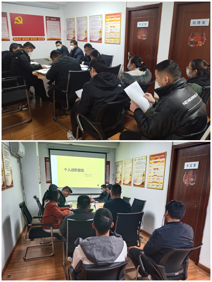 1月10日,分公司在會議室舉行了2022年度機關(guān)員工績效考核大會和機關(guān)部門負責人、項目經(jīng)理述職述廉大會。會上首先對機關(guān)部門及員工進行考核,每位員工對2022年度工作情況進行總結(jié)匯報,找出工作不足,明確新的一年改進和努力方向,部門負責人對本部門人員工作完成情況逐一進行點評。接著對分公司機關(guān)部門和部門負責人、項目經(jīng)理進行考核,分公司6名同志采用PPT的形式結(jié)合一年來的工作實際,從德、能、勤、績、廉五個方面進行工作述職,有總結(jié)、有不足、有改進措施、有思路打算。胡迎東在會上逐一進行了點評,在肯定工作成績的同時也指出需要改進之處。會上還發(fā)放考核測評表進行了現(xiàn)場測評。