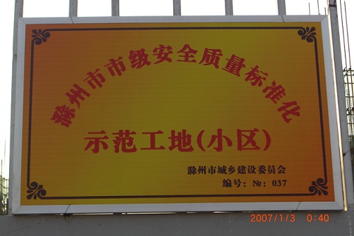 2010年12月31日,滁州分公司承建的皖投水岸星城一期三標段工程成功創(chuàng)建滁州市安全質量標準化示范工地。
