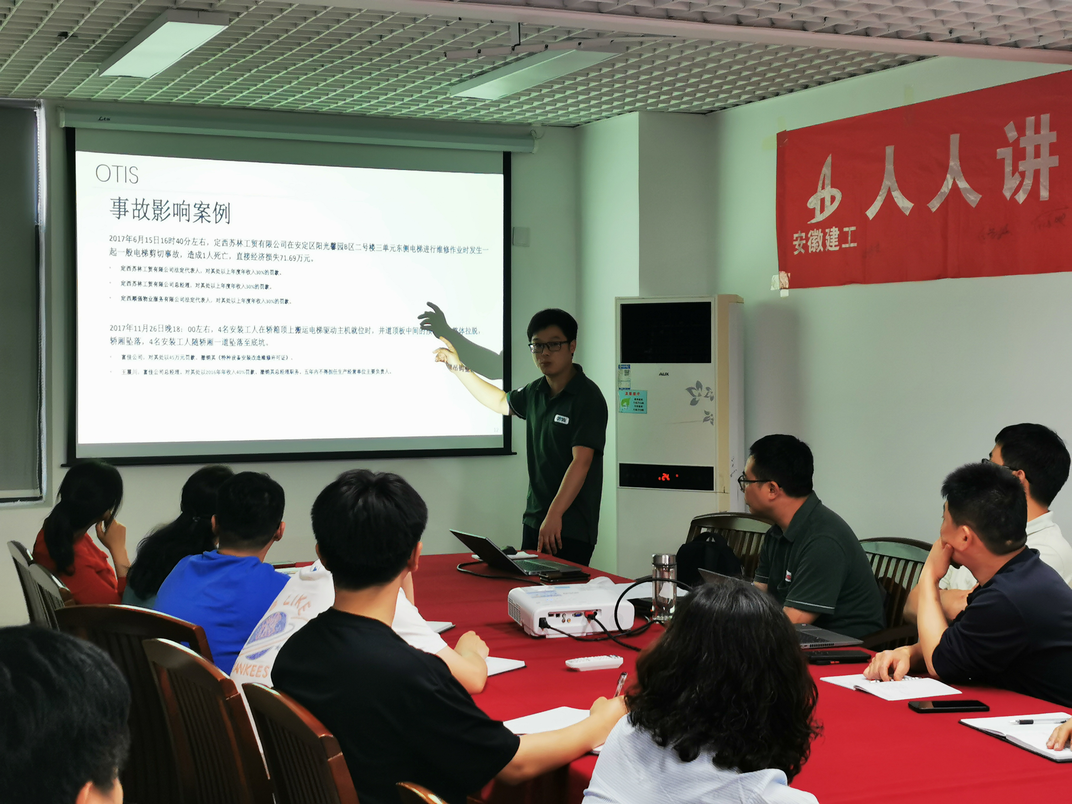 為提高電梯安裝從業(yè)人員的安全生產(chǎn)意識和安全工作管控水平,真正做到“人人講安全,個個懂應(yīng)急”,6月6日,電梯分公司舉辦了“電梯安裝安全風(fēng)險防范知識”培訓(xùn)。分公司在肥員工及四家戰(zhàn)略合作勞務(wù)單位的項目負(fù)責(zé)人參加本次培訓(xùn)。