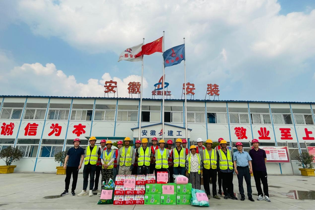 近日高溫來襲,為做好夏季高溫作業(yè)勞動保護(hù)工作,6月13日下午,蚌埠分公司經(jīng)理、黨支部副書記趙銘亮,黨支部書記、副經(jīng)理王偉,副經(jīng)理趙榮珣前往輝隆項(xiàng)目部開展送清涼慰問活動,為項(xiàng)目部管理人員和工人們免費(fèi)發(fā)放防暑降溫清涼物資。