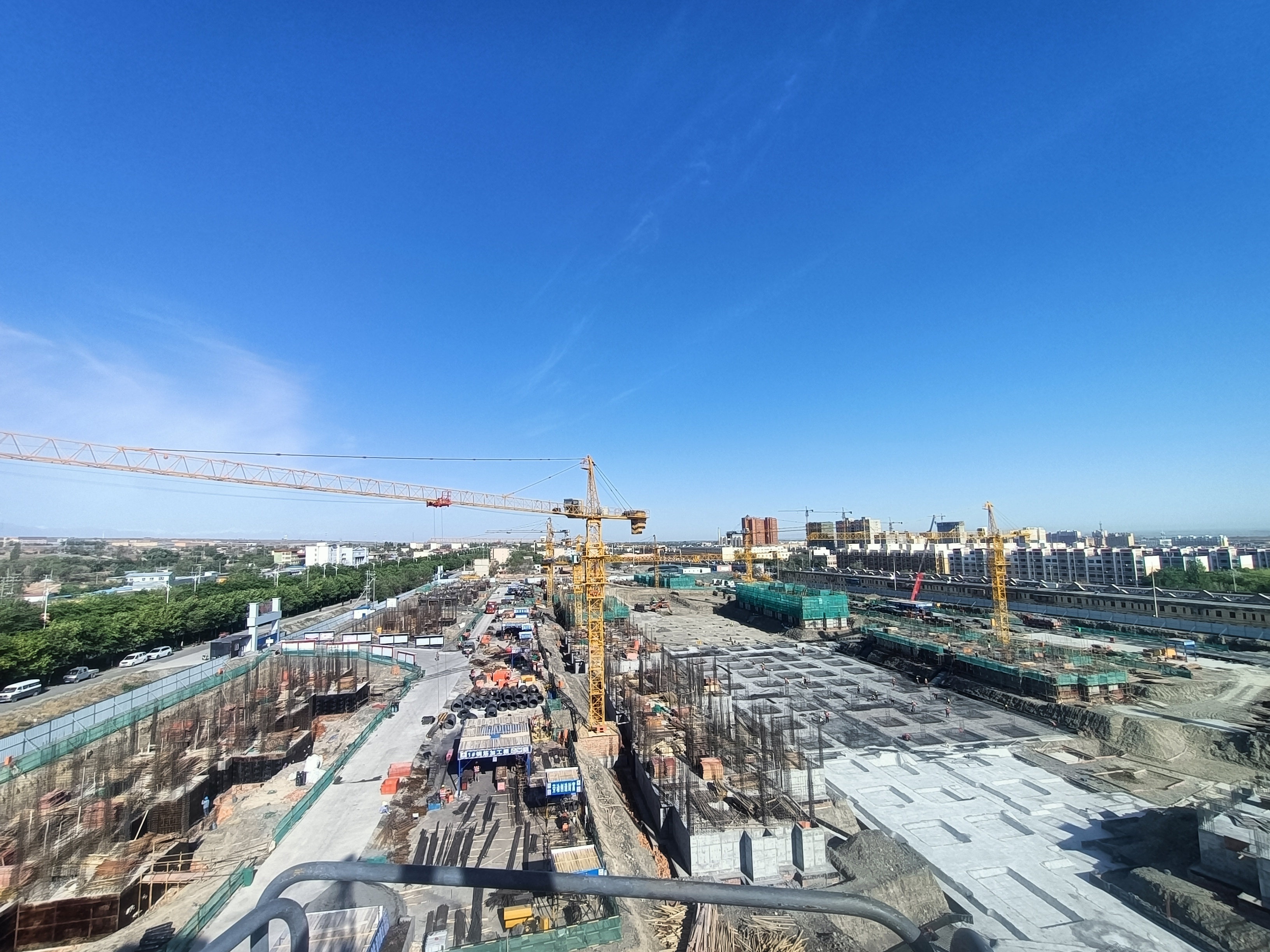 烏蘇市南苑新城項(xiàng)目本項(xiàng)目占地面積118047.31㎡,項(xiàng)目新建34棟住宅樓,1466套住宅,平均層數(shù)10層,總建筑面積222500.41㎡。其中:地上住宅總面積185360㎡,配套商服1209㎡,配套綜合樓1890㎡,日間照料中心1758㎡,社區(qū)物業(yè)用房1869㎡,地下室建筑面積18903㎡,地下車庫及人防建筑面積11511.41㎡,綠化面積42000㎡,配套建設(shè)及附屬工程。截至目前,A區(qū)1,2,3,4基礎(chǔ)土方開挖,筏板防水施工,筏板鋼筋綁扎已完成,6,8,12,13,14,15,16,17,18,20,21,22,23,24#正負(fù)零以下結(jié)構(gòu)工程施工完畢;A6,12,21,22,23,24#基礎(chǔ)回填已完畢,一層外架施工已完成70%,一層結(jié)構(gòu)已完成60%;人防地庫土方已開挖至消防水池,總體土方已開挖完成90%,地庫31-38交A-1至A-8軸鋼筋綁扎完成,16-26軸交A-K軸鋼筋綁扎完畢,木工筏板加固模板支護(hù)工程已完成50%;B區(qū)換熱站,3,4#土方工程已開挖至基底預(yù)留30CM。