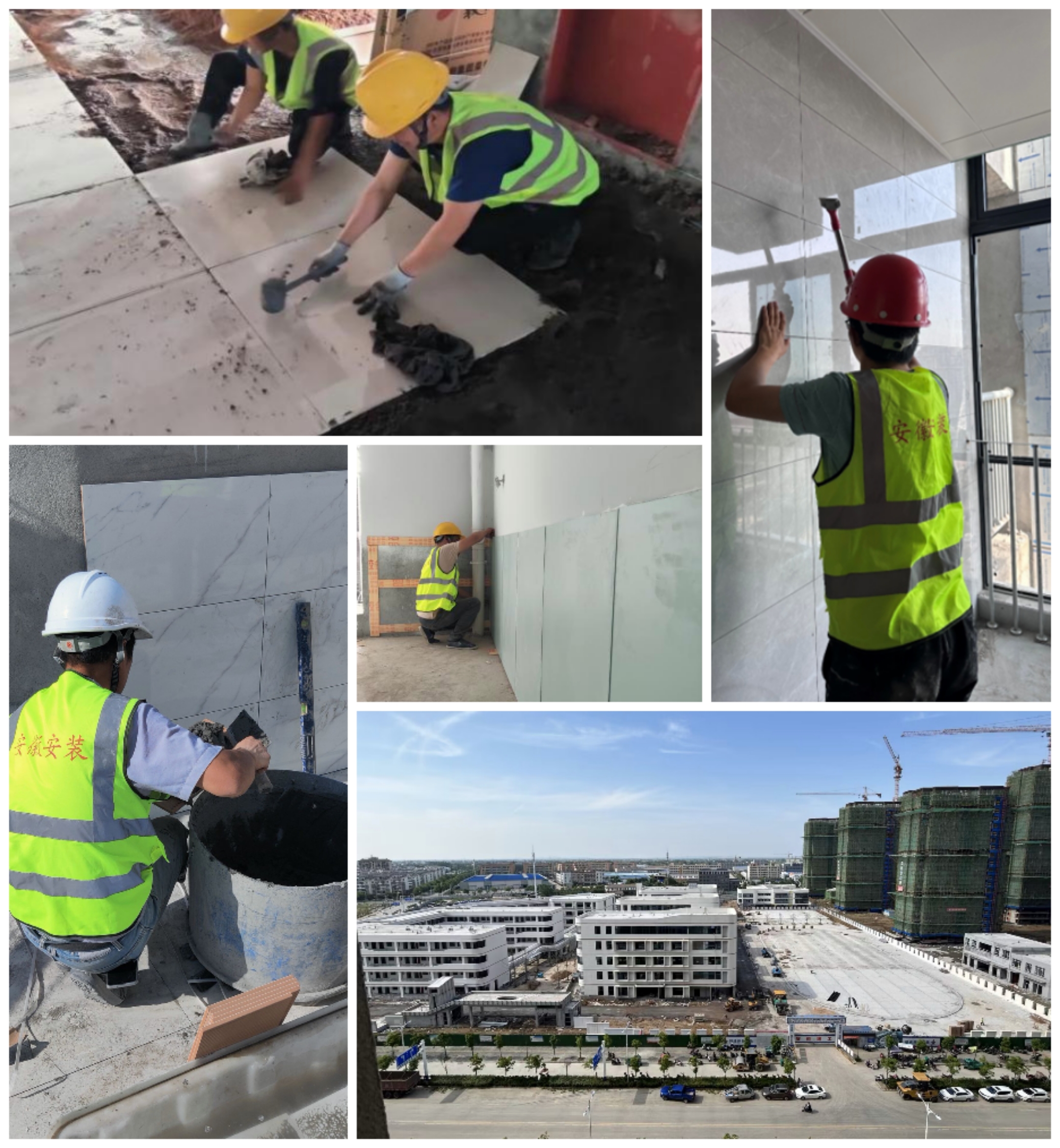 工程自3月份開工以來,經(jīng)過項目部全體人員齊心協(xié)力、加班加點,工程進展迅速。目前室外附屬工程雨污水、綠化、道路水穩(wěn)已完成75%工程量;室內(nèi)裝飾裝修已完成80%工程量,進入最后沖刺階段;外墻保溫及涂料已完成90%工程量;鋼結構工程已施工完畢;外幕墻龍骨焊接已完成70%工程量,正在進入緊張施工高峰階段。