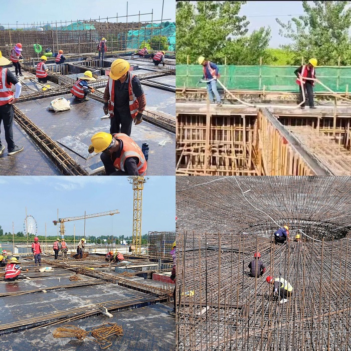 面對(duì)工期緊、任務(wù)重、壓力大,現(xiàn)場(chǎng)困難重重的實(shí)際情況,項(xiàng)目部多次召開專題會(huì)議,統(tǒng)一思想,倒排施工計(jì)劃,并積極開展勞動(dòng)競賽。為確保競賽目標(biāo)實(shí)現(xiàn),項(xiàng)目部領(lǐng)導(dǎo)班子實(shí)行分工包保制,堅(jiān)持靠前指揮,嚴(yán)控各個(gè)施工節(jié)點(diǎn),同時(shí),項(xiàng)目經(jīng)理對(duì)項(xiàng)目部成員也做了精細(xì)化分工調(diào)整,劃分區(qū)域、責(zé)任到人;對(duì)施工班組一條龍服務(wù),一站式解決。針對(duì)重難點(diǎn)問題做到急速反饋、急速解決,及時(shí)處理現(xiàn)場(chǎng)各類問題,確?!案魉酒湄?zé)、高效快捷、風(fēng)險(xiǎn)可控”。在搶抓工程進(jìn)度的同時(shí),項(xiàng)目部還嚴(yán)抓現(xiàn)場(chǎng)安全質(zhì)量管理。在常態(tài)化做好日常工作同時(shí),相繼開展了安全警示教育、觸電事故安全演練、砌筑、抹灰技能大賽等活動(dòng),并積極申報(bào)QC成果,其中《提高池壁與筏板連接處混凝土一次性成型率》QC榮獲省級(jí)二等獎(jiǎng),多措并舉加快推進(jìn)了項(xiàng)目建設(shè)。